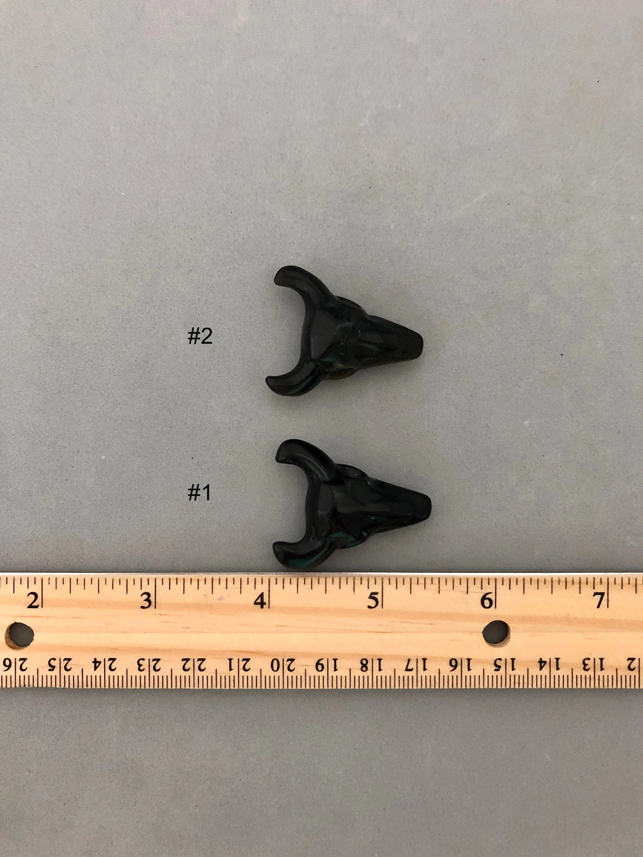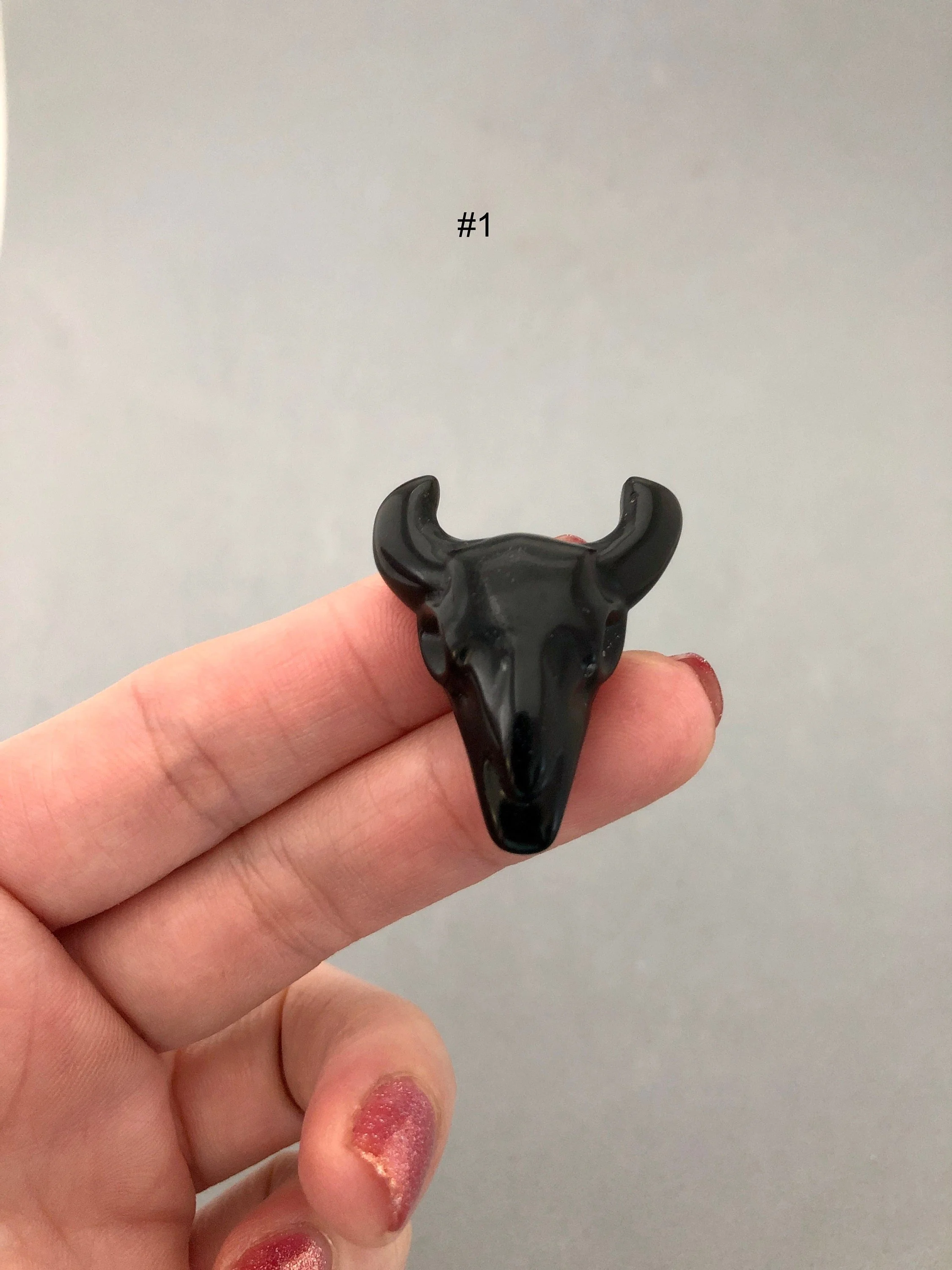 This listing is for one ox/cow/bull skull figurine made from obsidian. You'll choose your preference upon checkout. These are not drilled pieces. Here's more info for each piece: