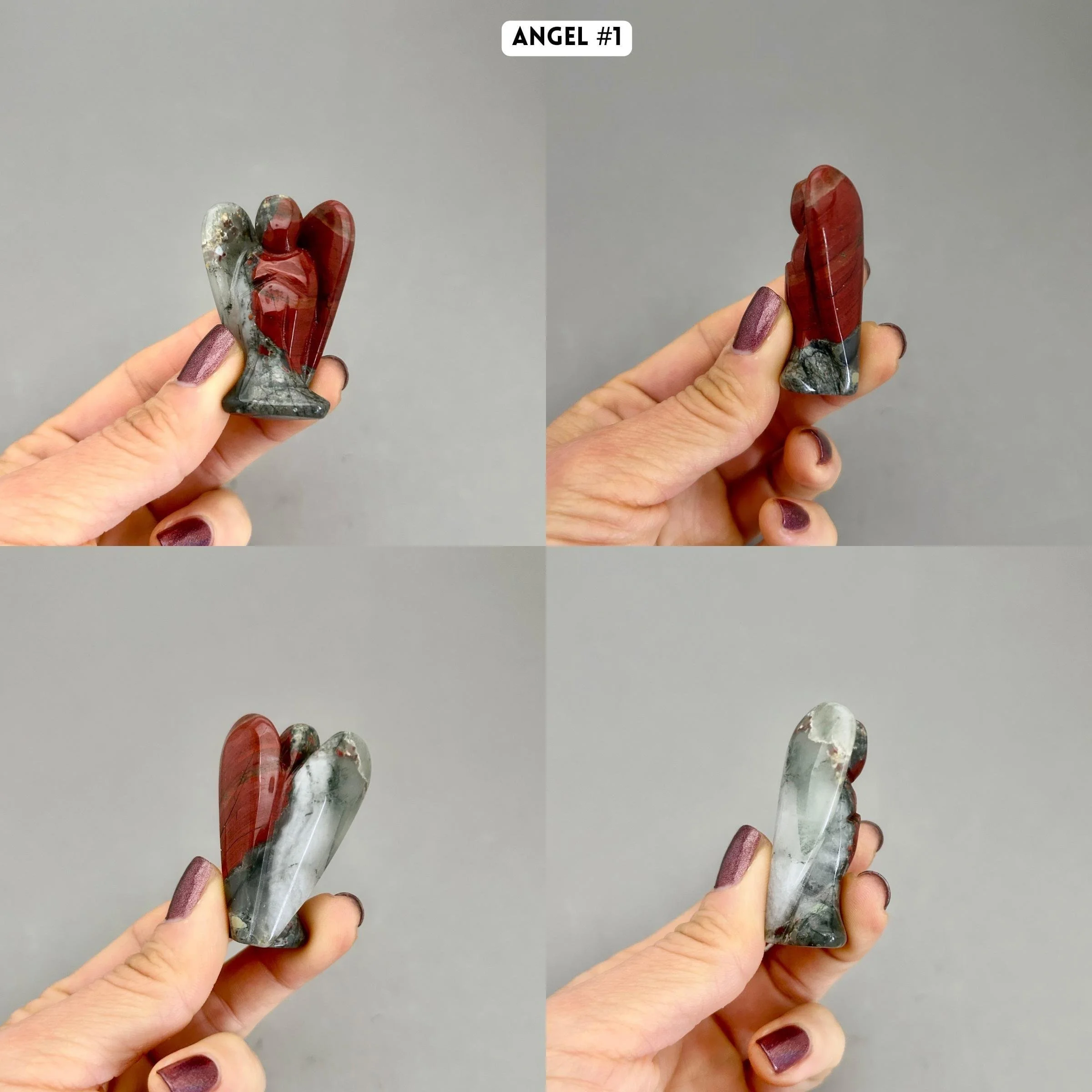 We could all use a little assistance from our angelic team, right? Having imagery or figurines of angels makes it easier to connect to them, like these beautiful bloodstone pieces. This listing is for one piece, which you'll choose upon checkout. Here are more details for each piece: