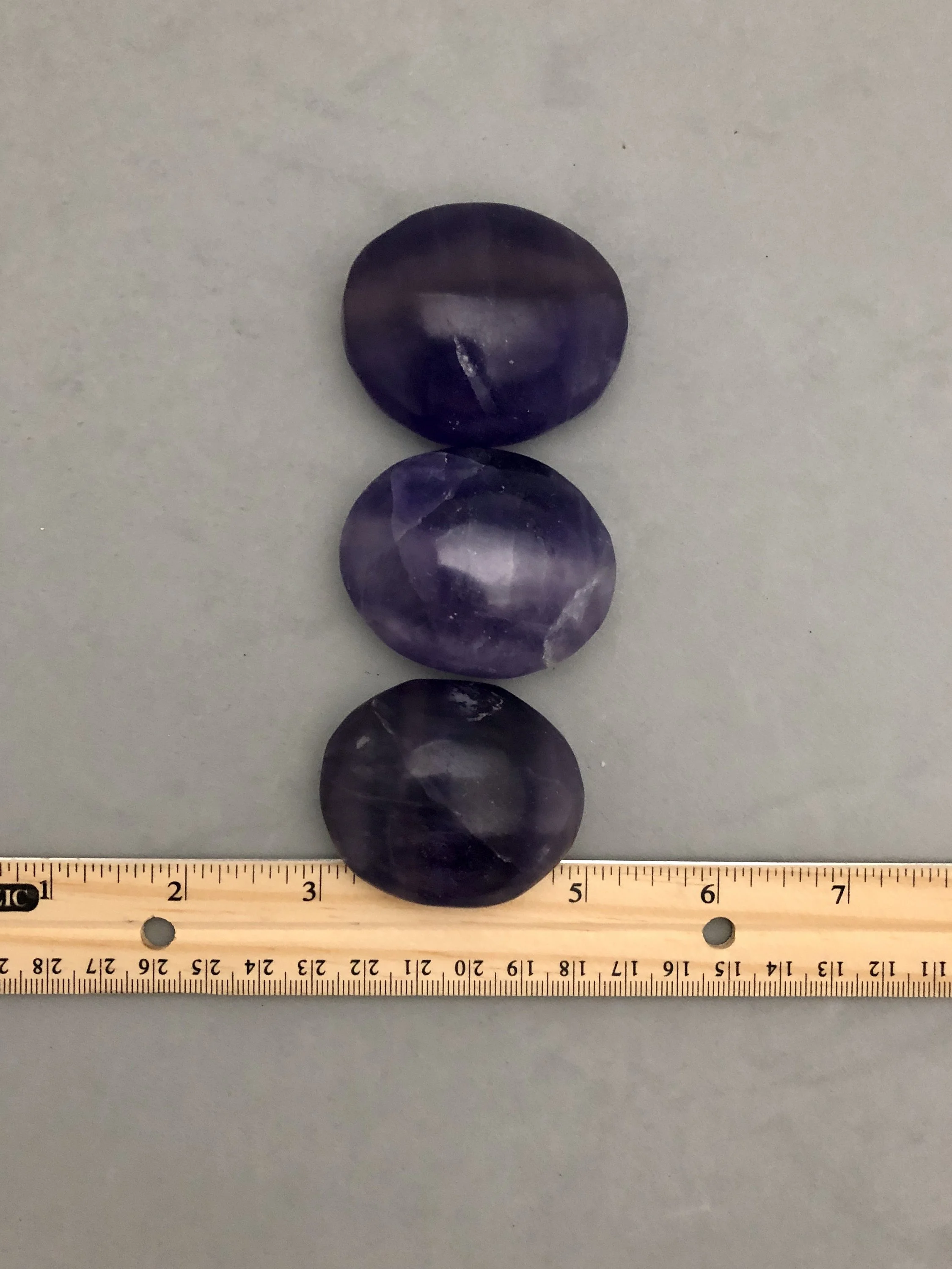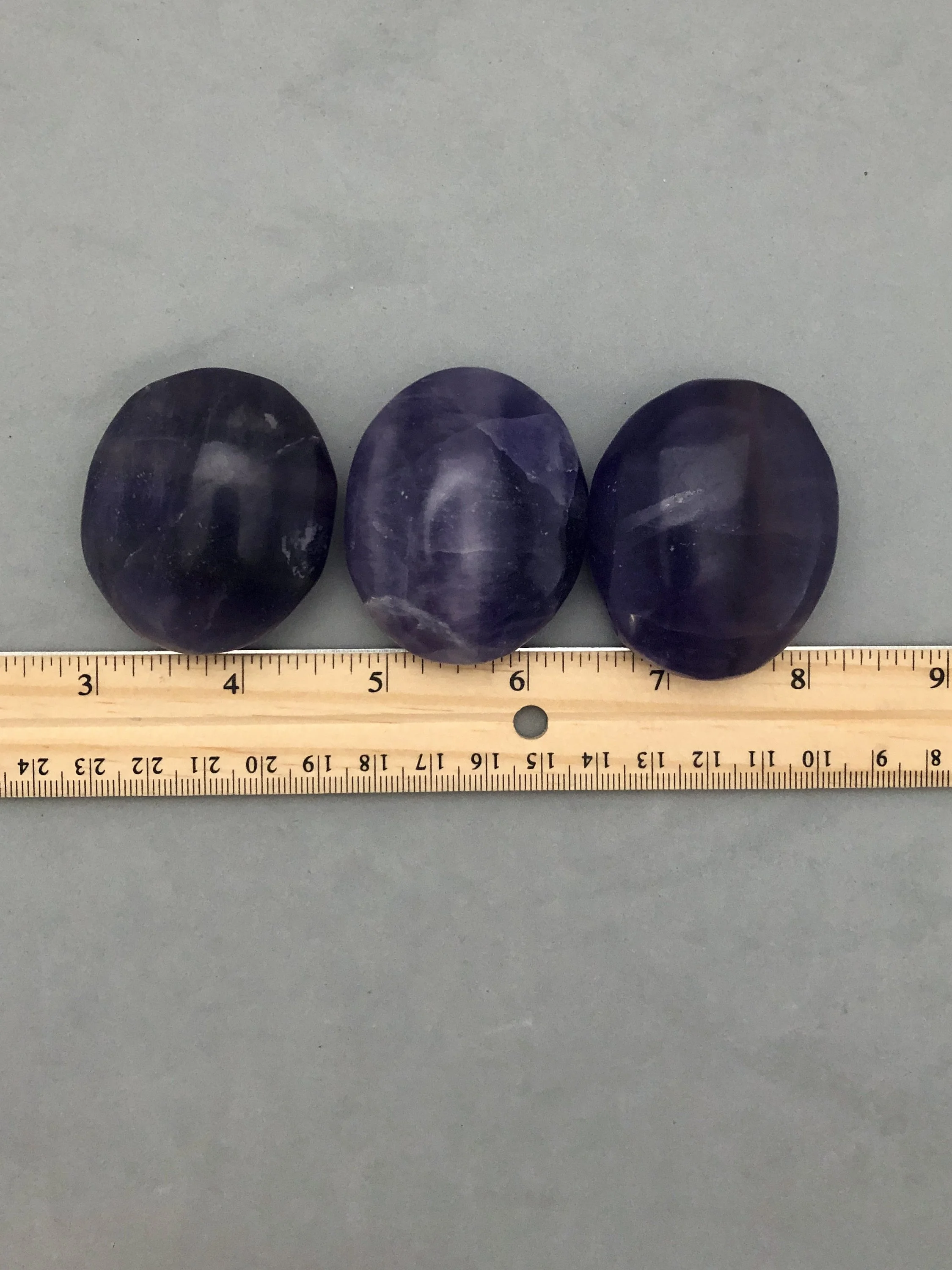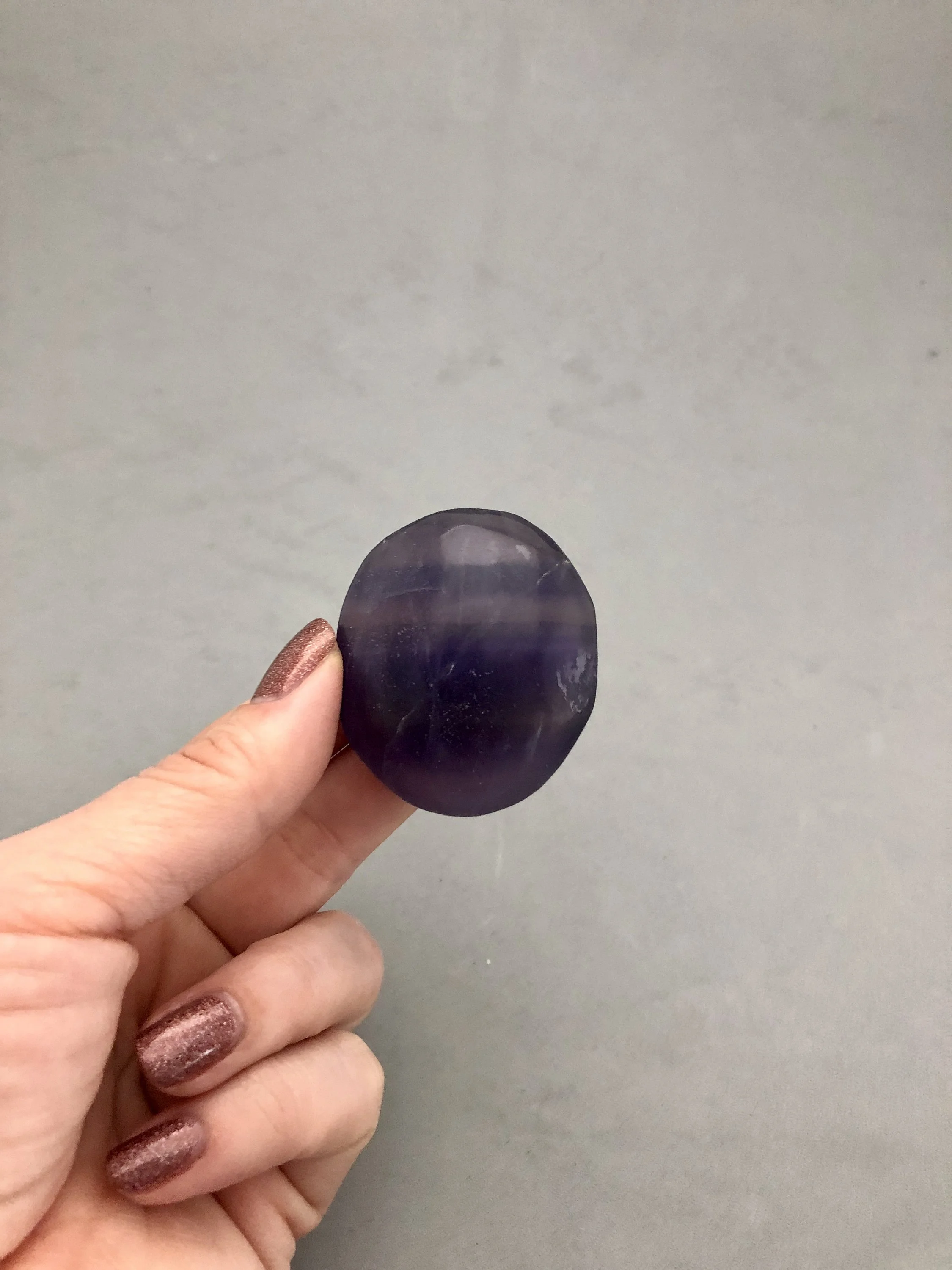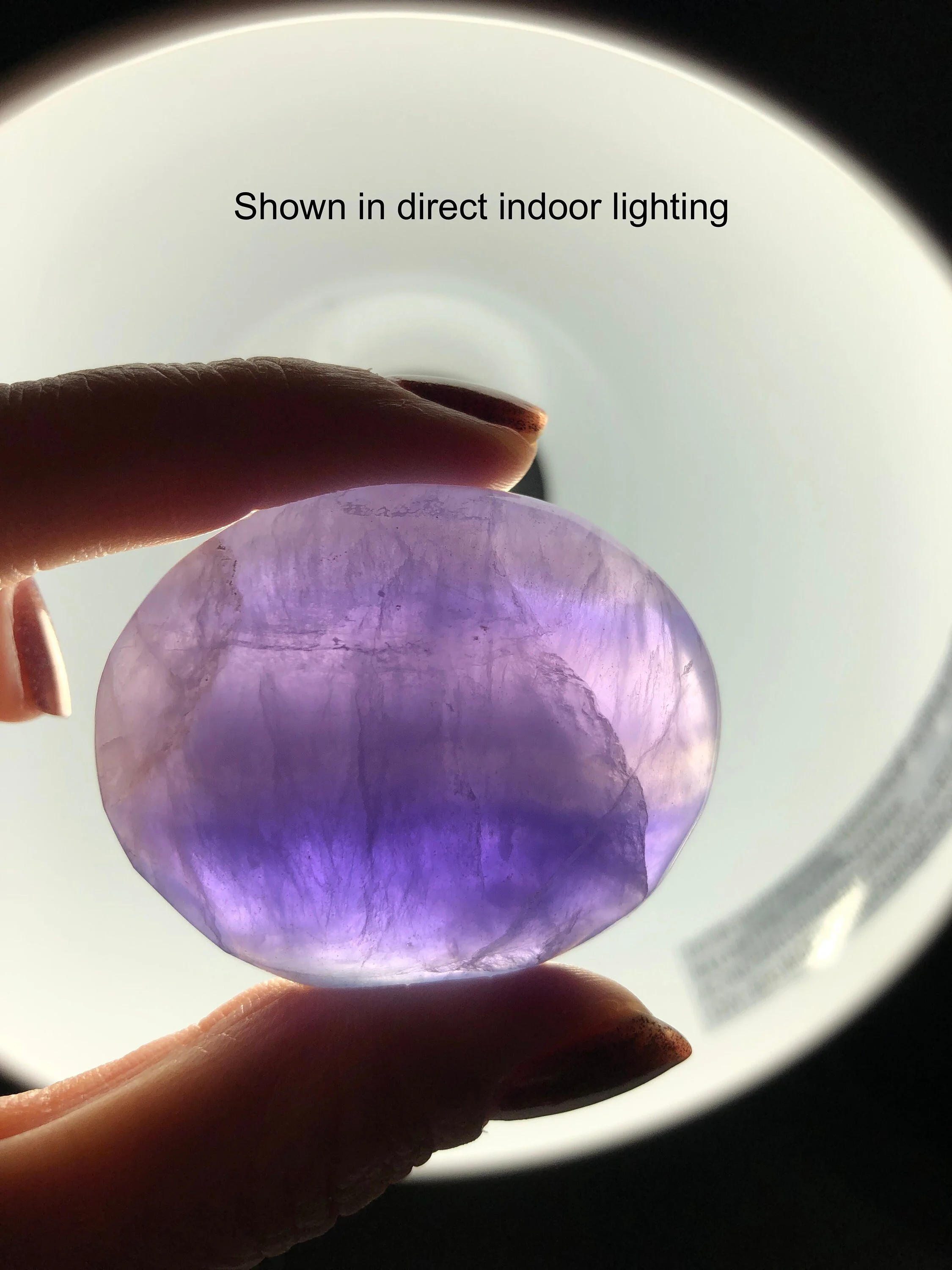 This type of fluorite has been called indigo fluorite and it is a fitting name. Just look at that color! It is even more beautiful in person, especially when you can see it with lighting (see pic #3). This listing is for one indigo fluorite palm stone, which measures approximately 1 15/16 - 2 1/16" x 1 5/8" x 15/16" and will be chosen from the current inventory.
