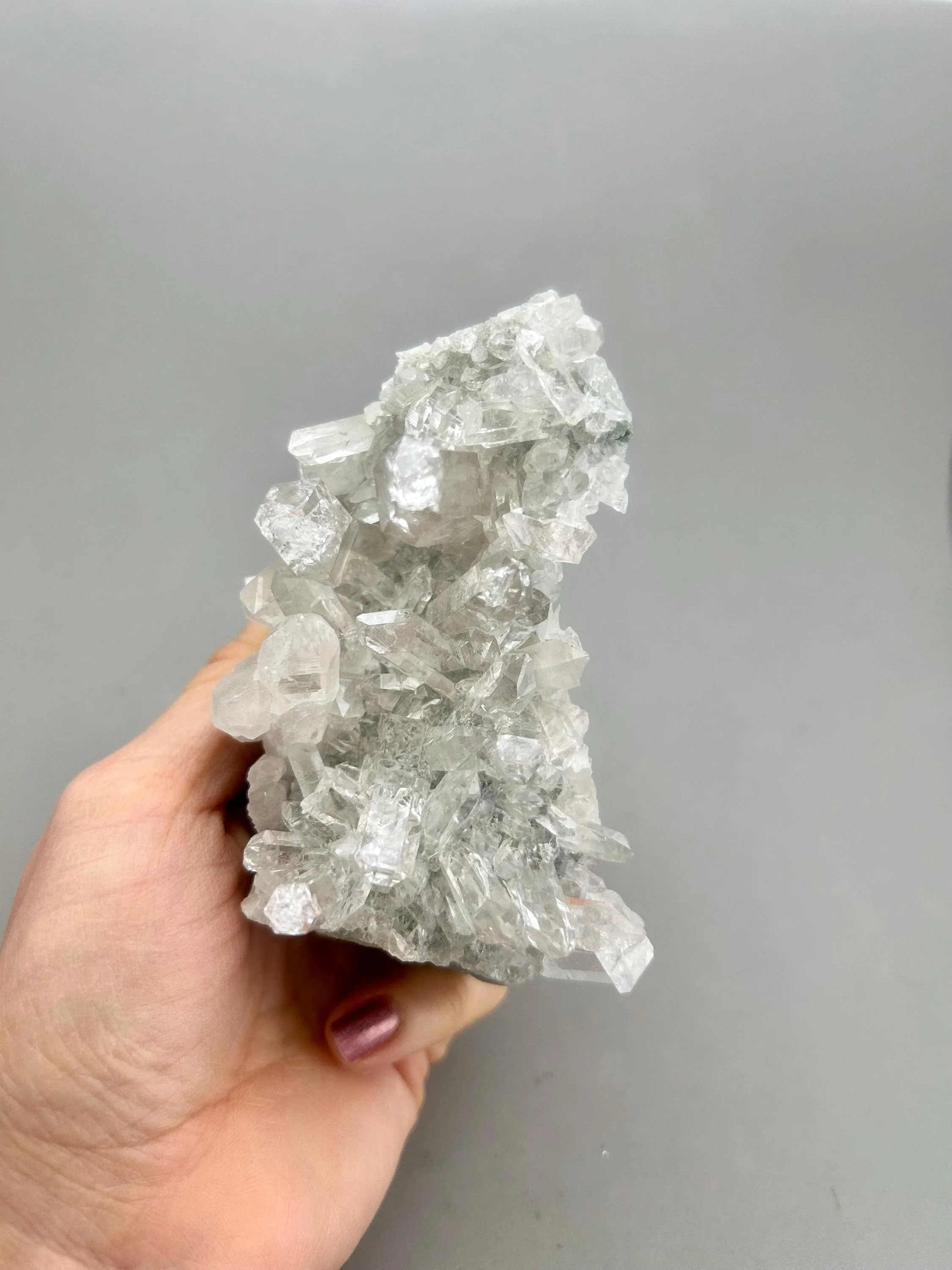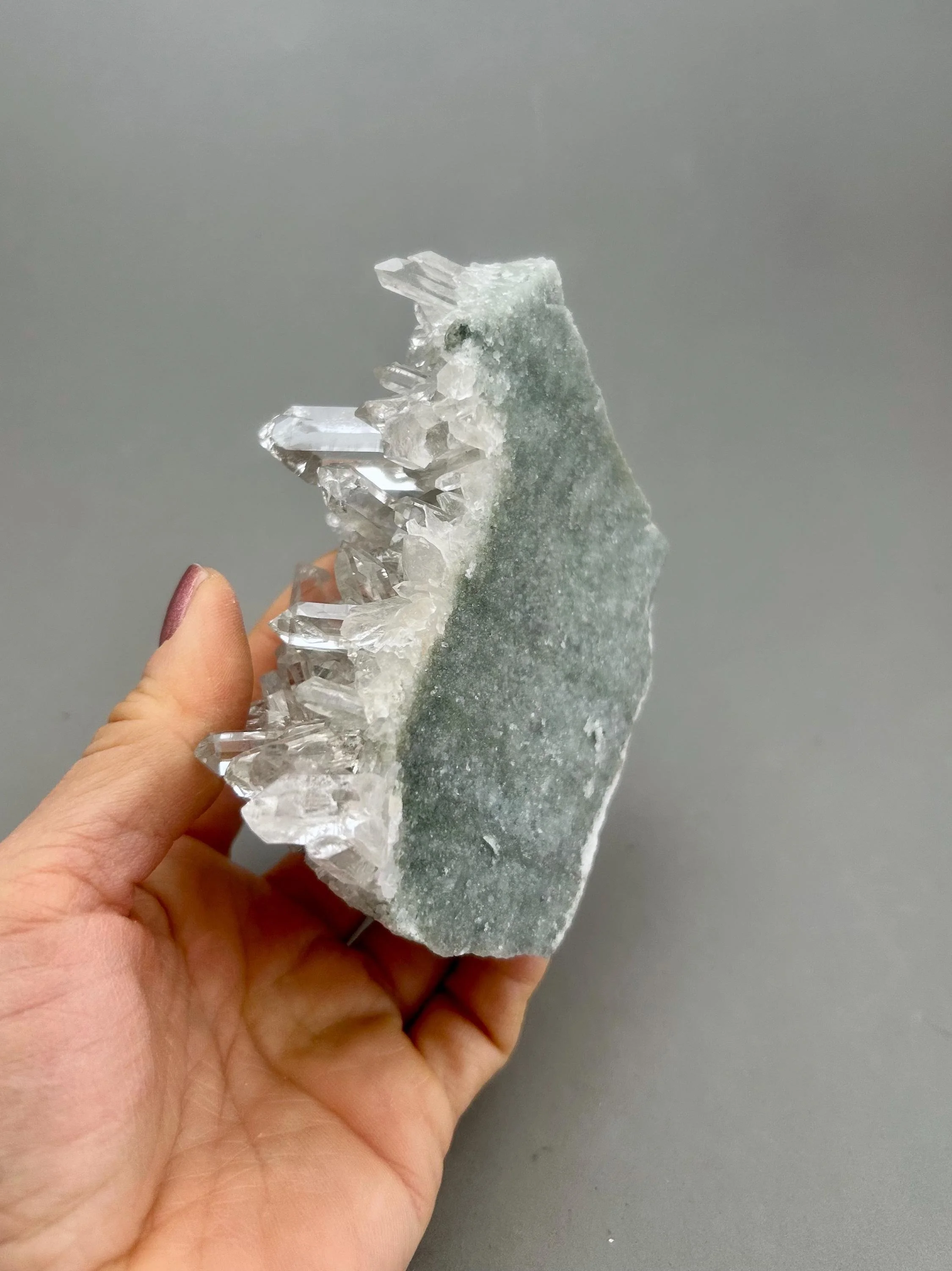 I can see and feel why people flock to the Lemurian quartz specimens from Colombia. These are some of the highest vibrational pieces I have come across! This piece came from La Belleza Mine in Santander, Colombia and weighs about 3.9 oz. The dimensions are about 3 3/4" x 1 9/16" x 1". The barcodes, or striations, on this one are distinct and prominent on just about every face, there's a small rainbow and my favorite feature of this stone is that is stands up by itself at an angle.