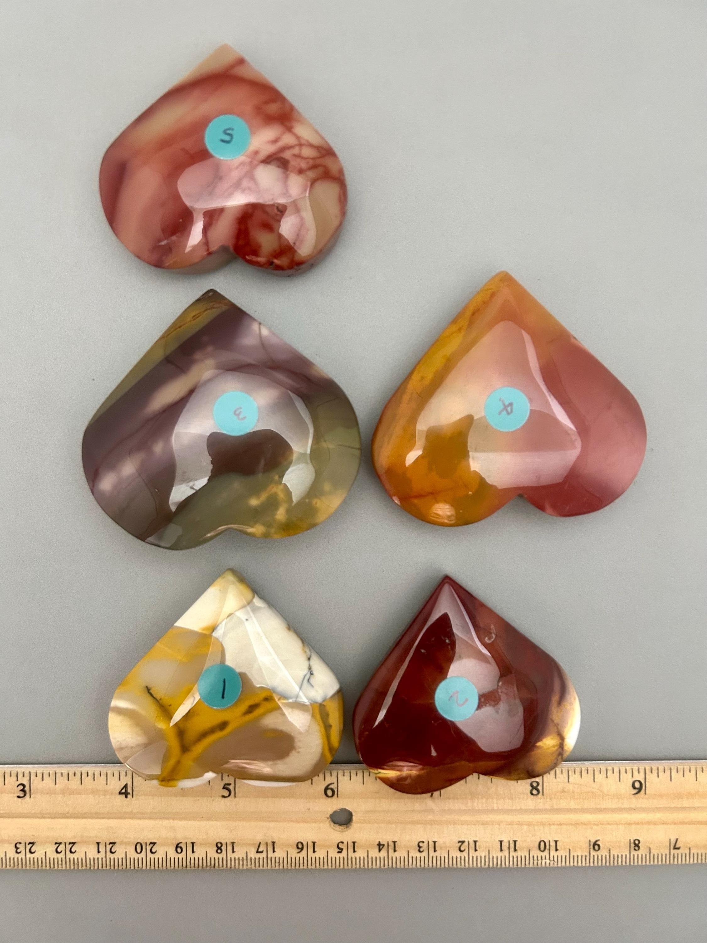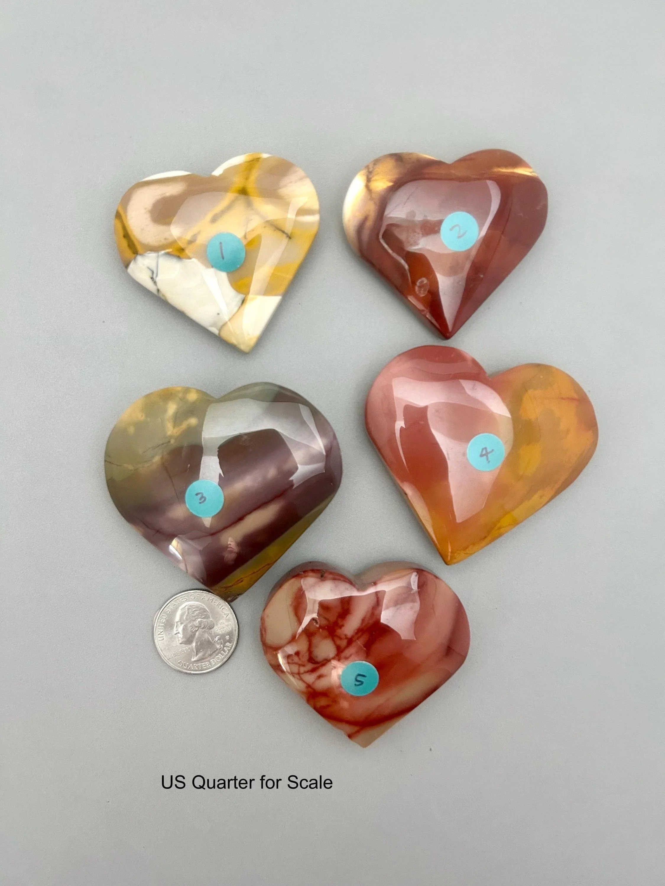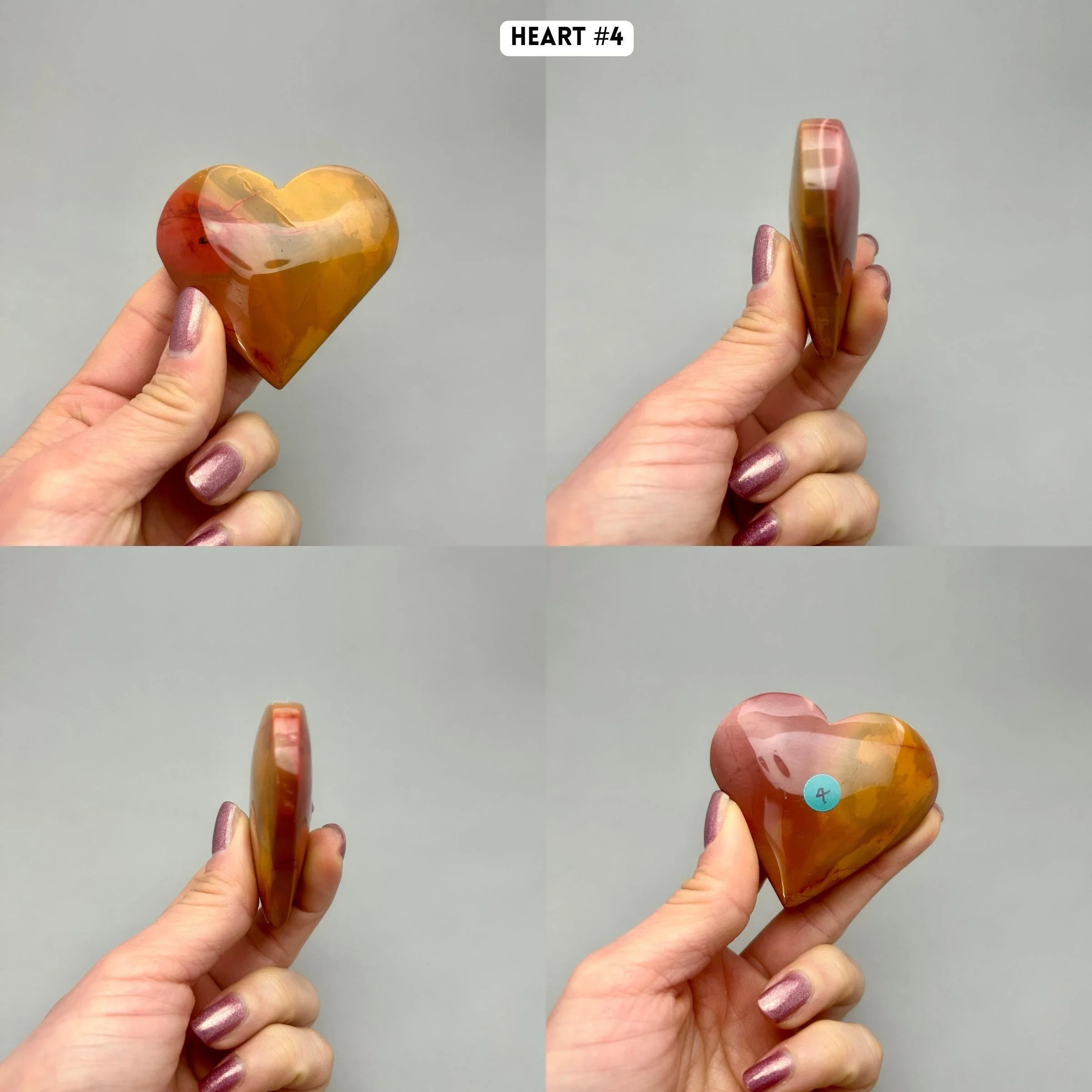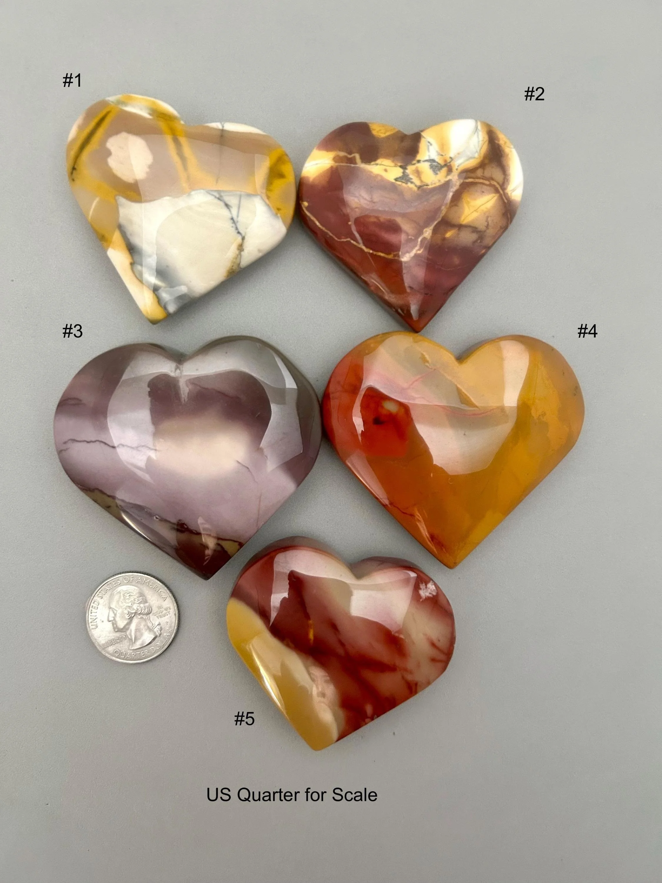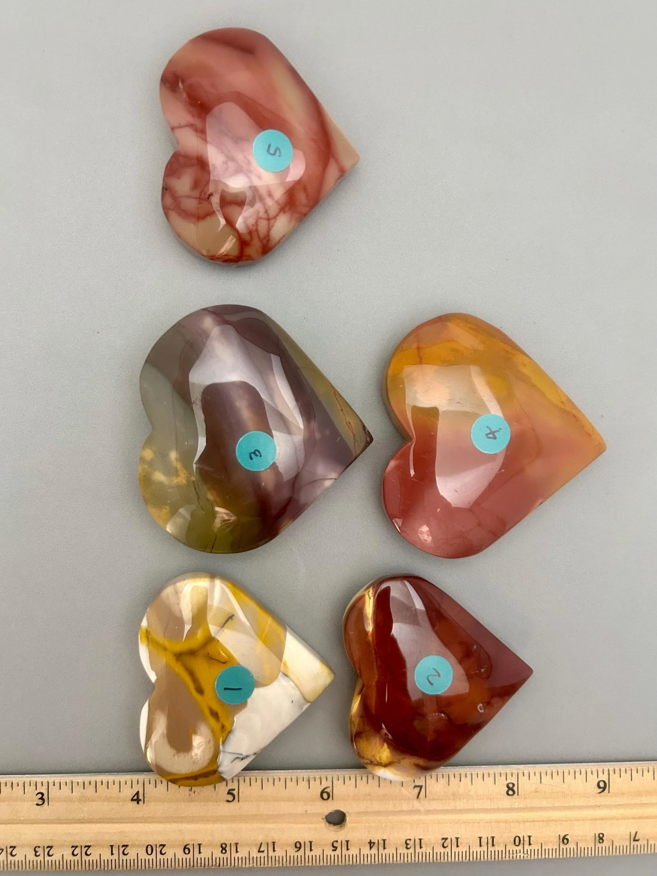 Mookaite is a type of jasper found in gorgeous mustard yellow, burgundy, cream and tan colorations. Often there is a mixing of these colors within one piece. This listing is for one mookaite heart. You'll choose your heart upon checkout. Here are more details for each piece: