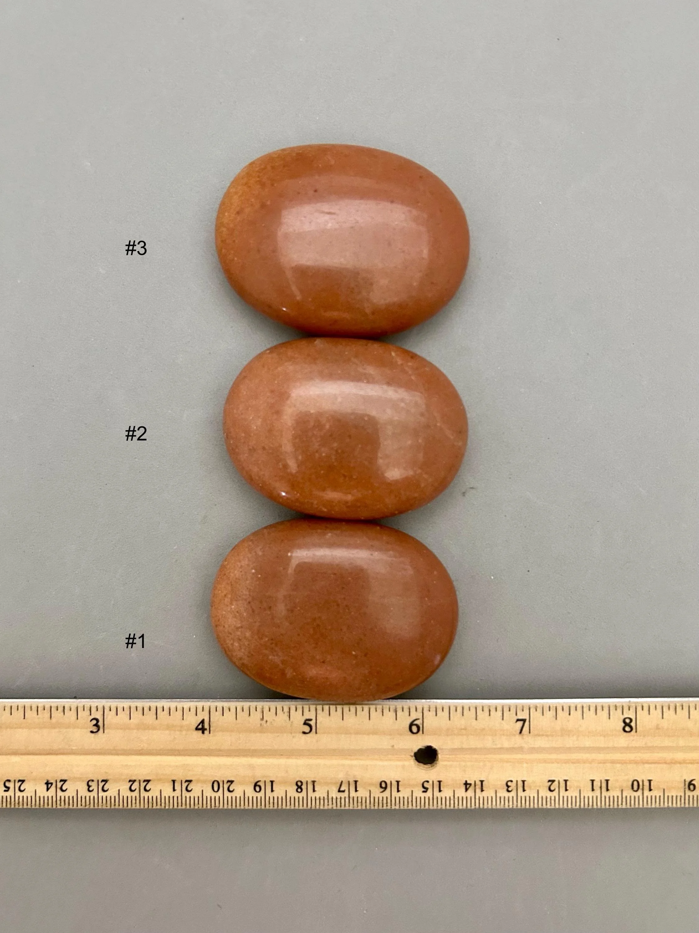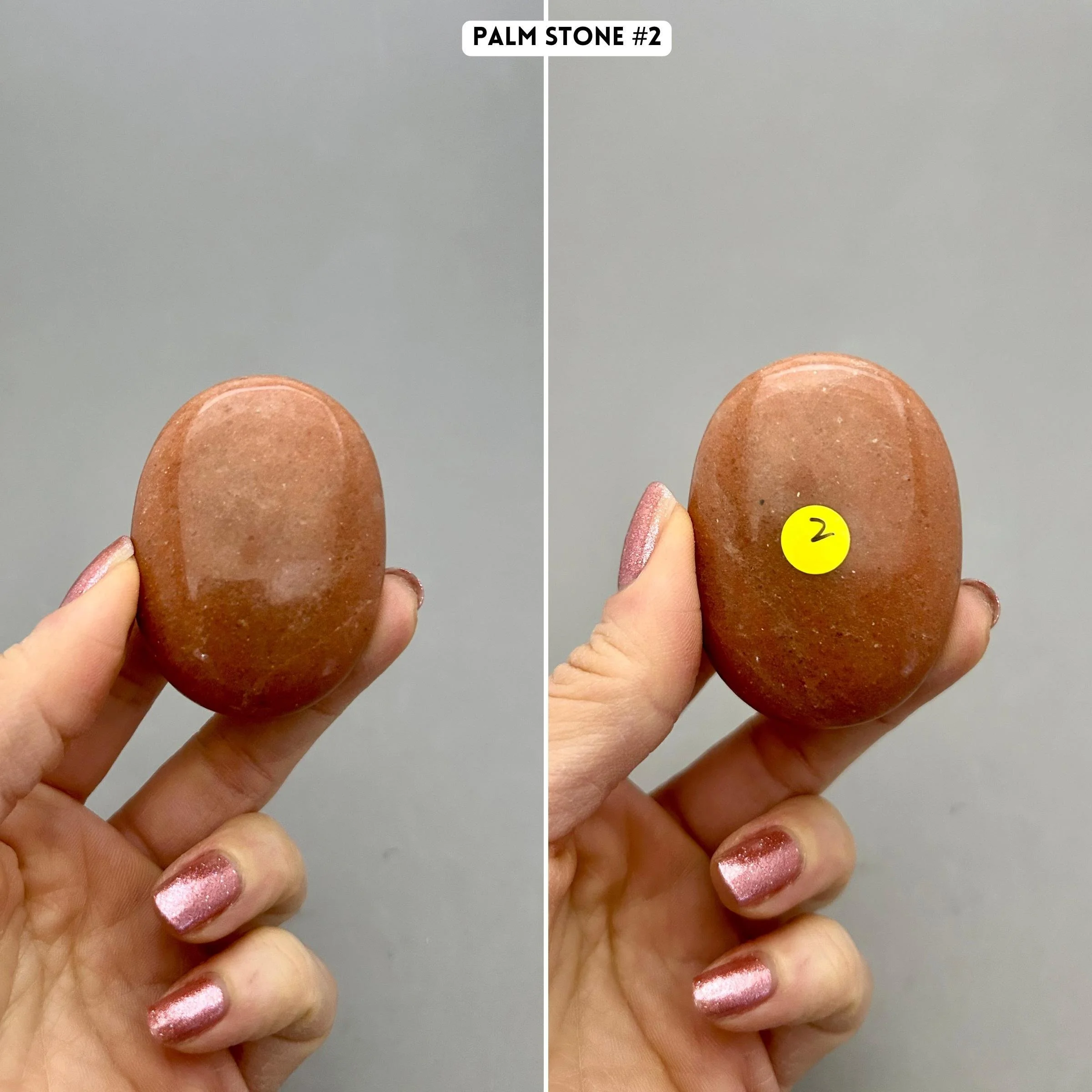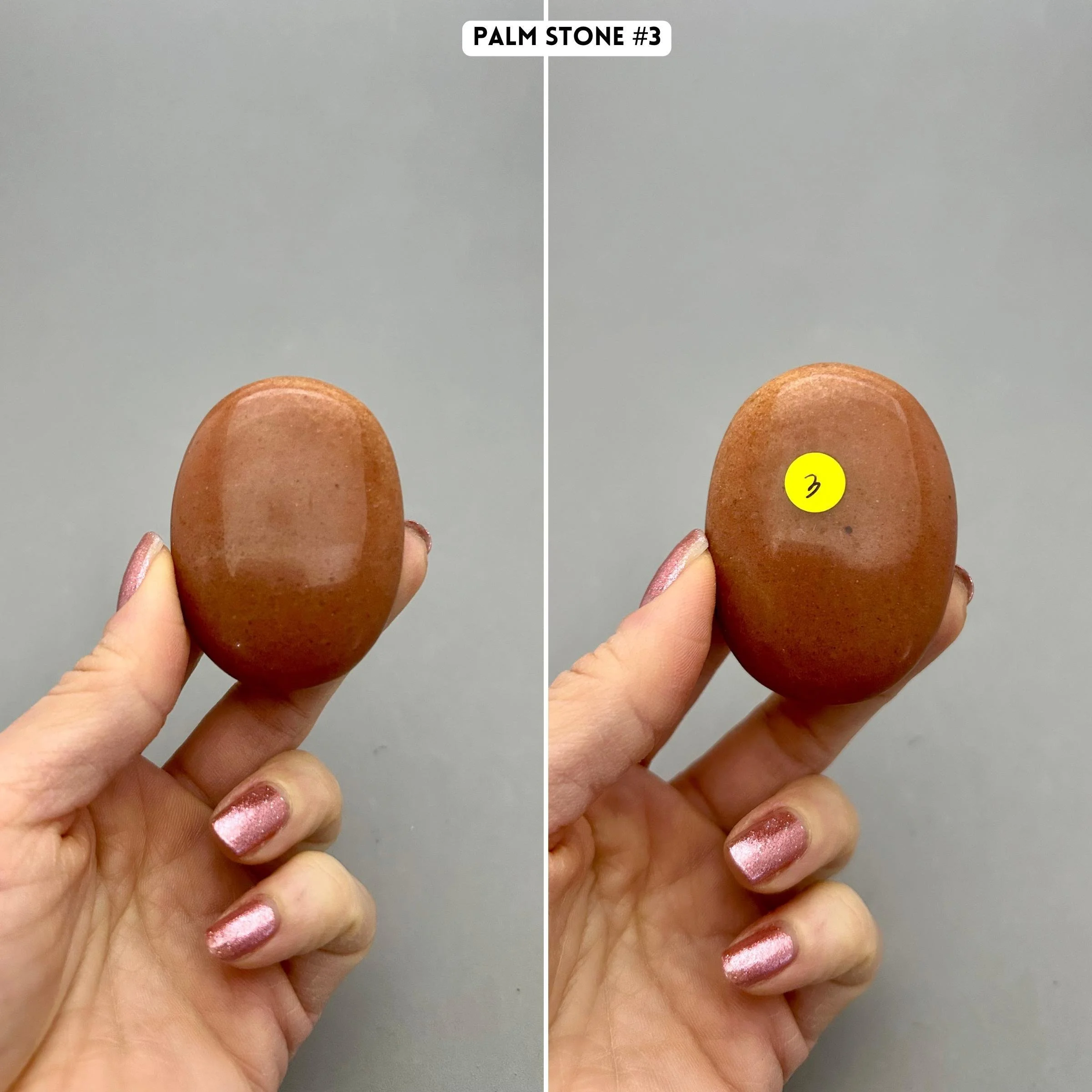 What a special treat these are! These are orange aventurine palm stones, and are a nice hefty size. You'll choose your preferred palm stone upon checkout. Here are more details for each piece: