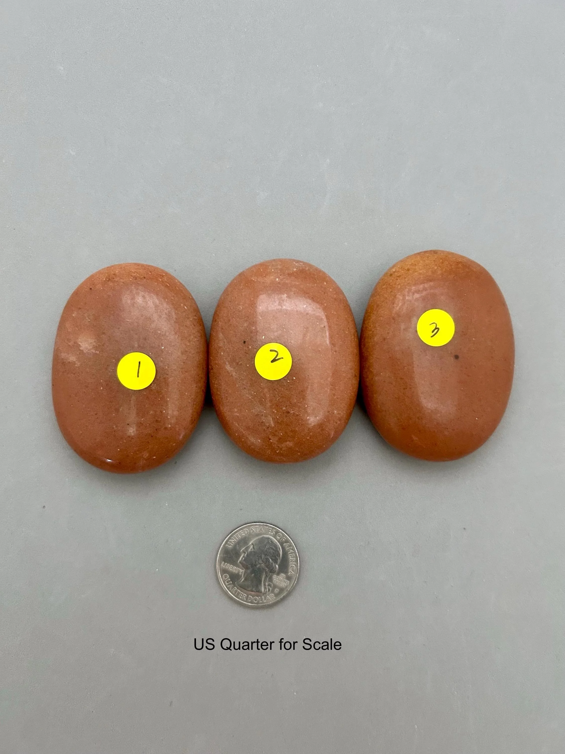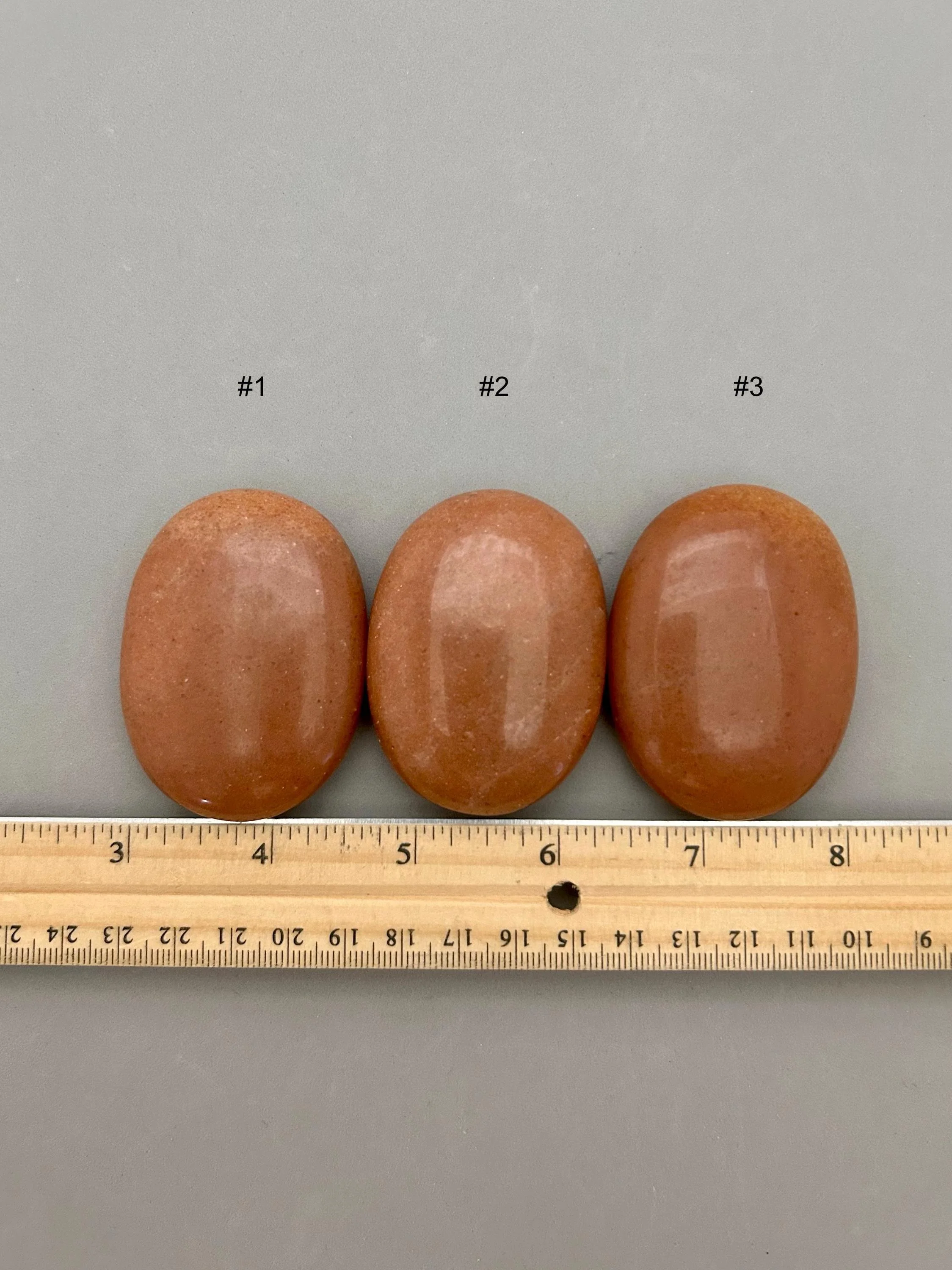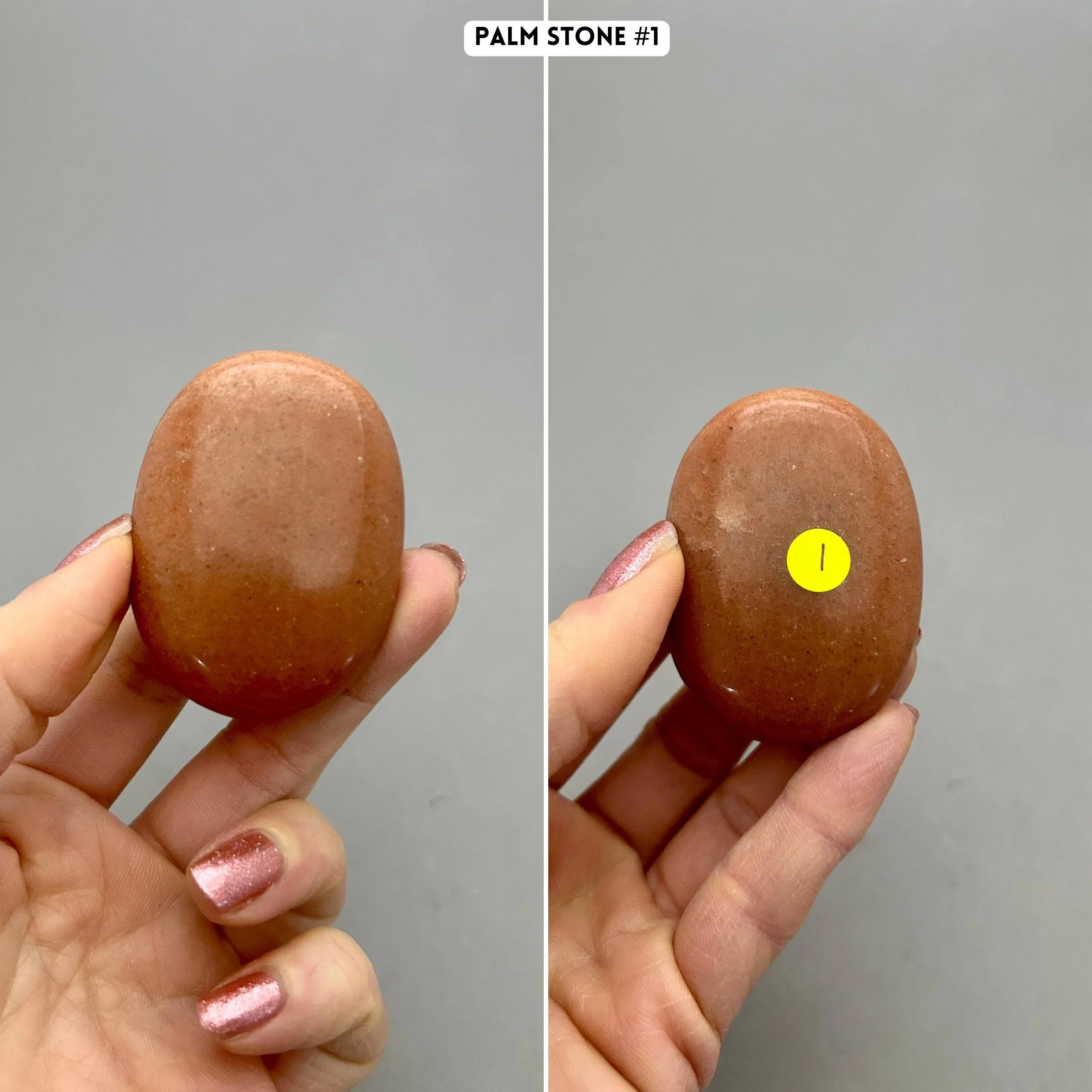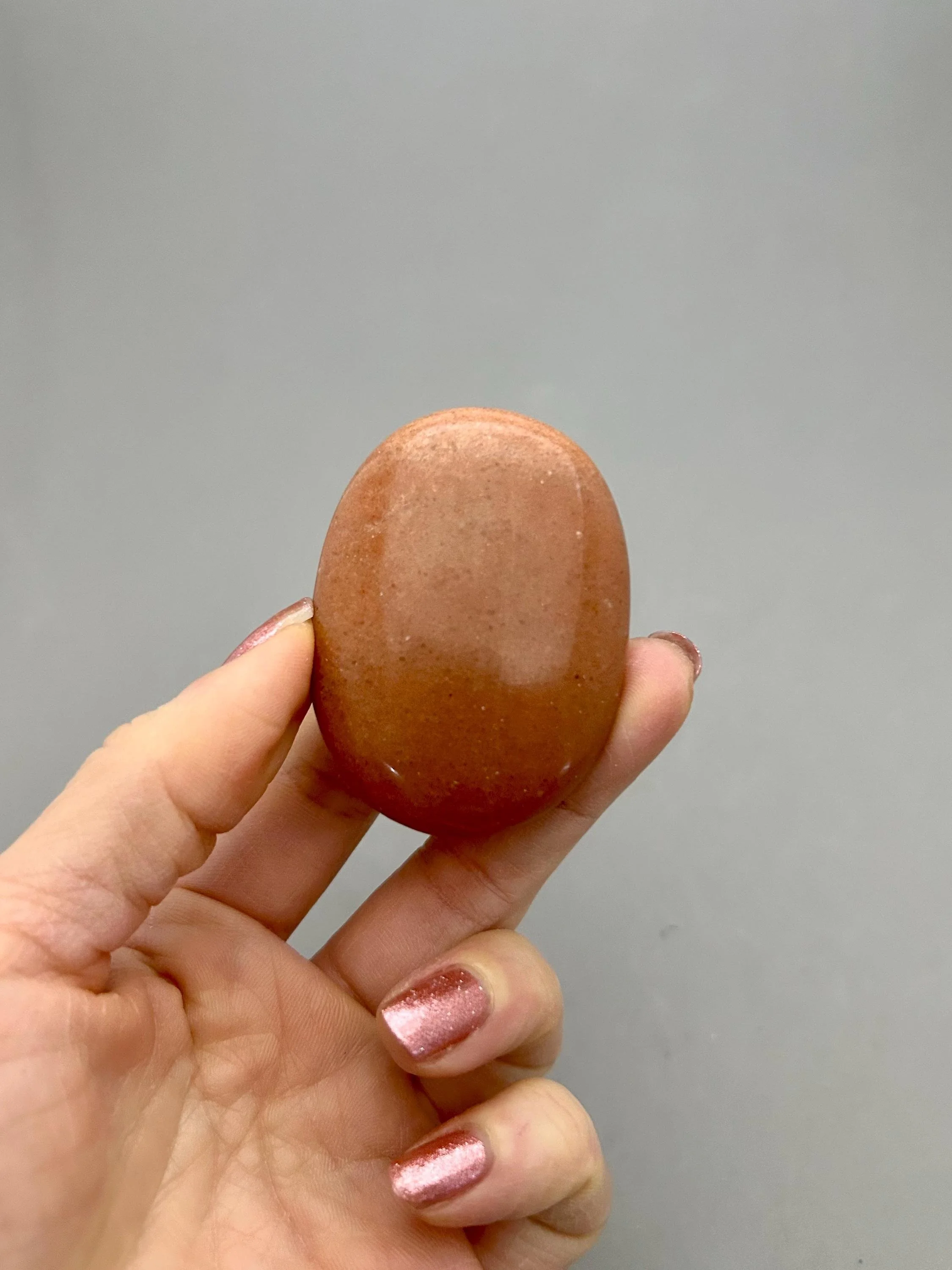 What a special treat these are! These are orange aventurine palm stones, and are a nice hefty size. You'll choose your preferred palm stone upon checkout. Here are more details for each piece: