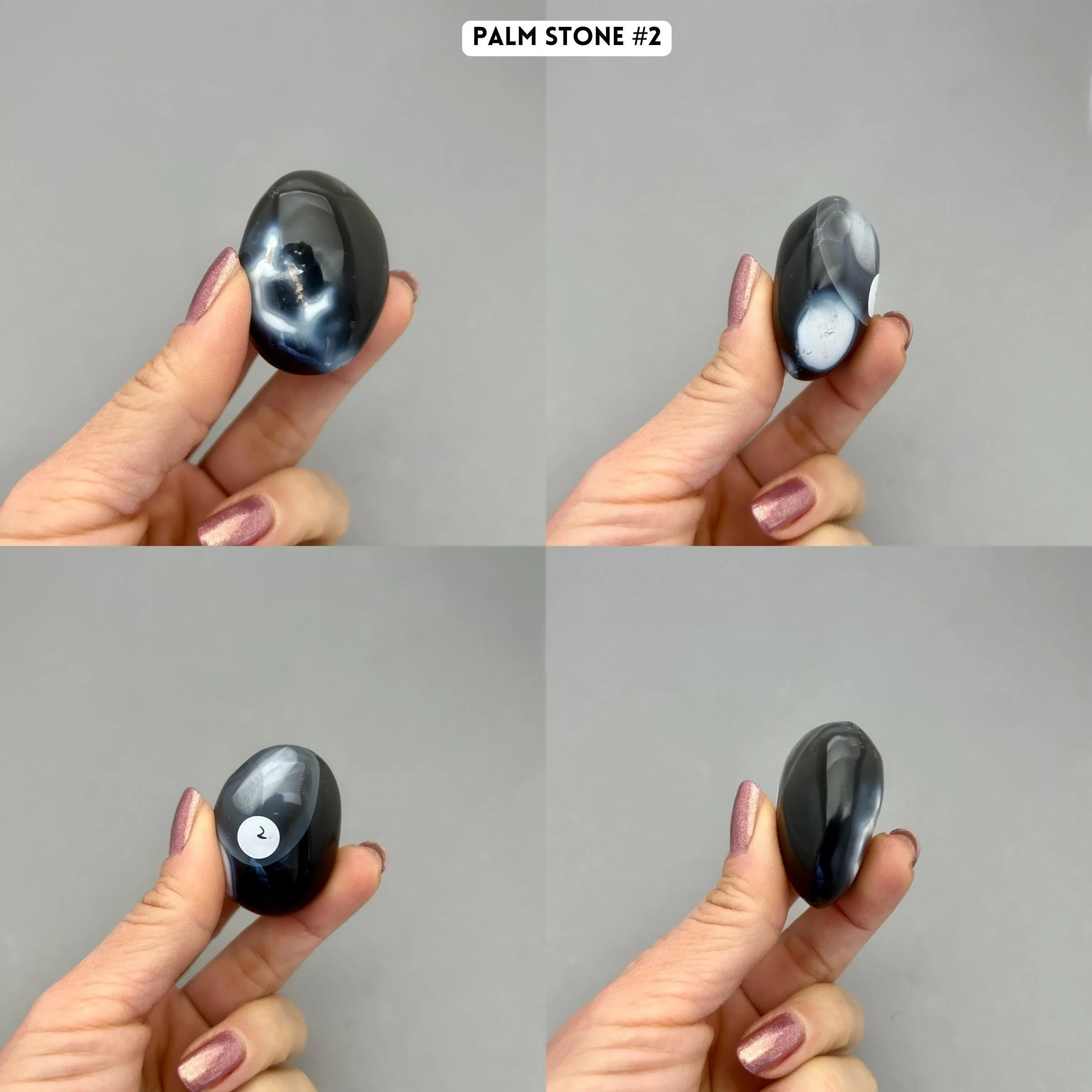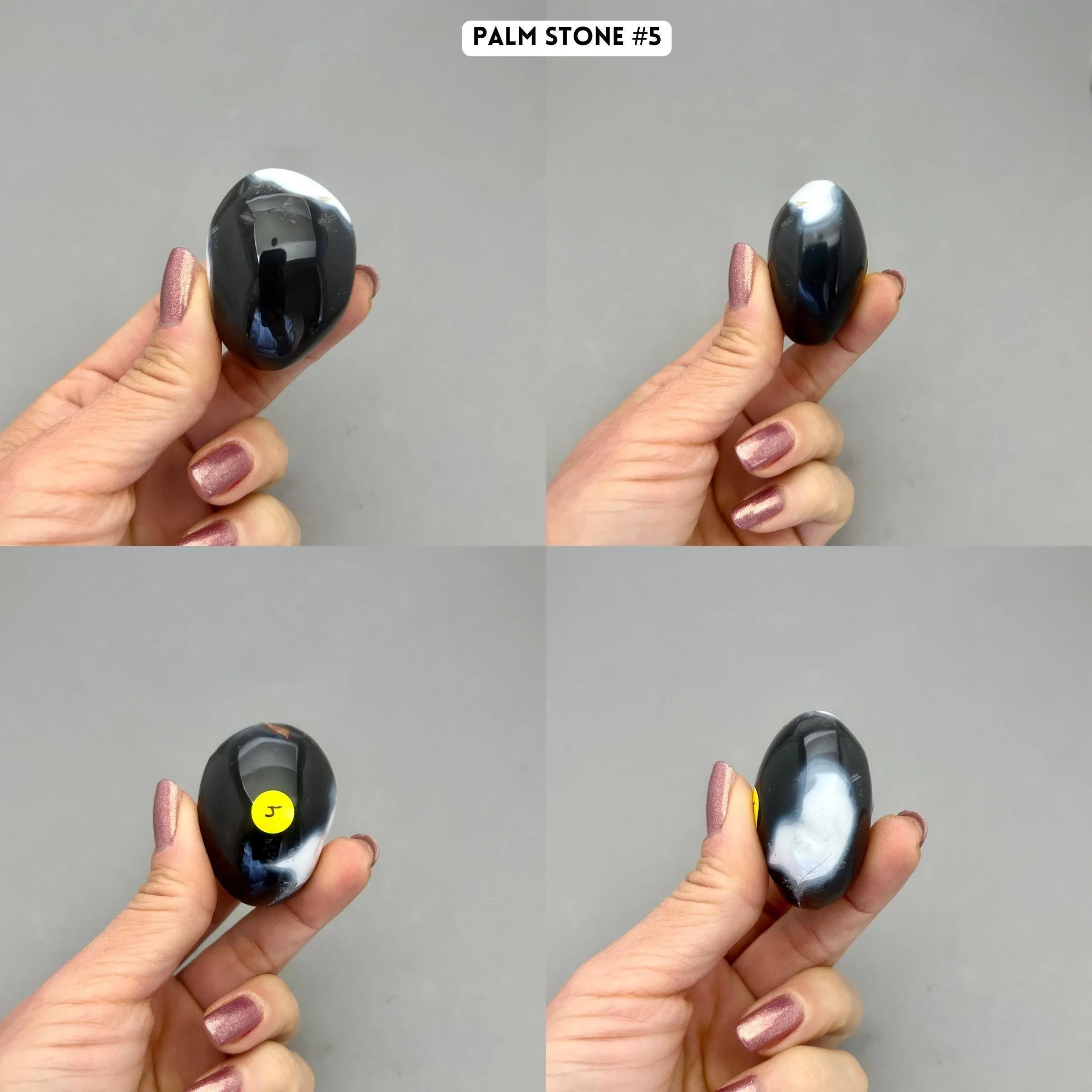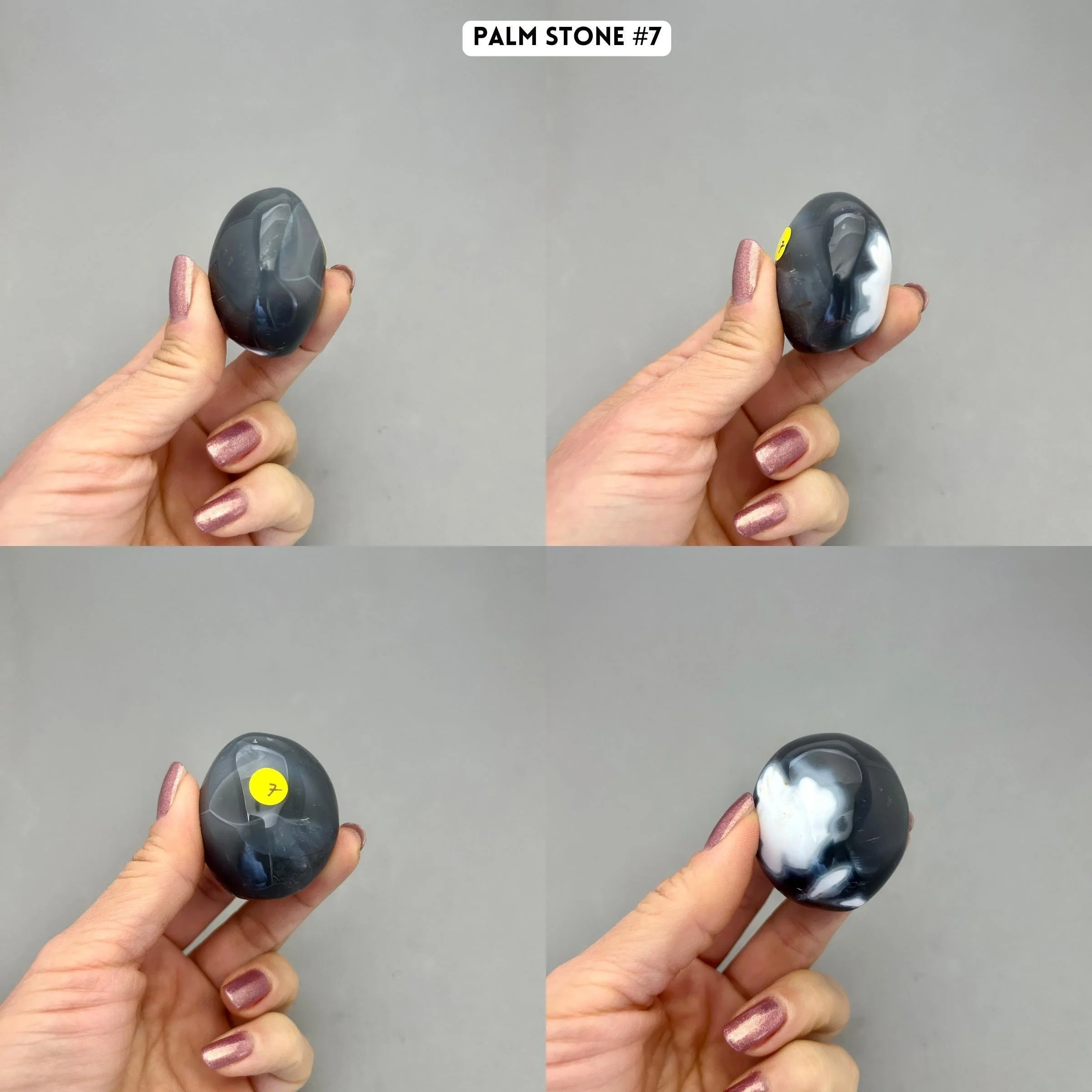 Agate comes in many wonderful forms, and colorations, but one of my favorite is orca agate, with it's glossy black and white fields of color. This listing is for one palm stone, which you'll choose upon checkout. Here are more details for each piece: