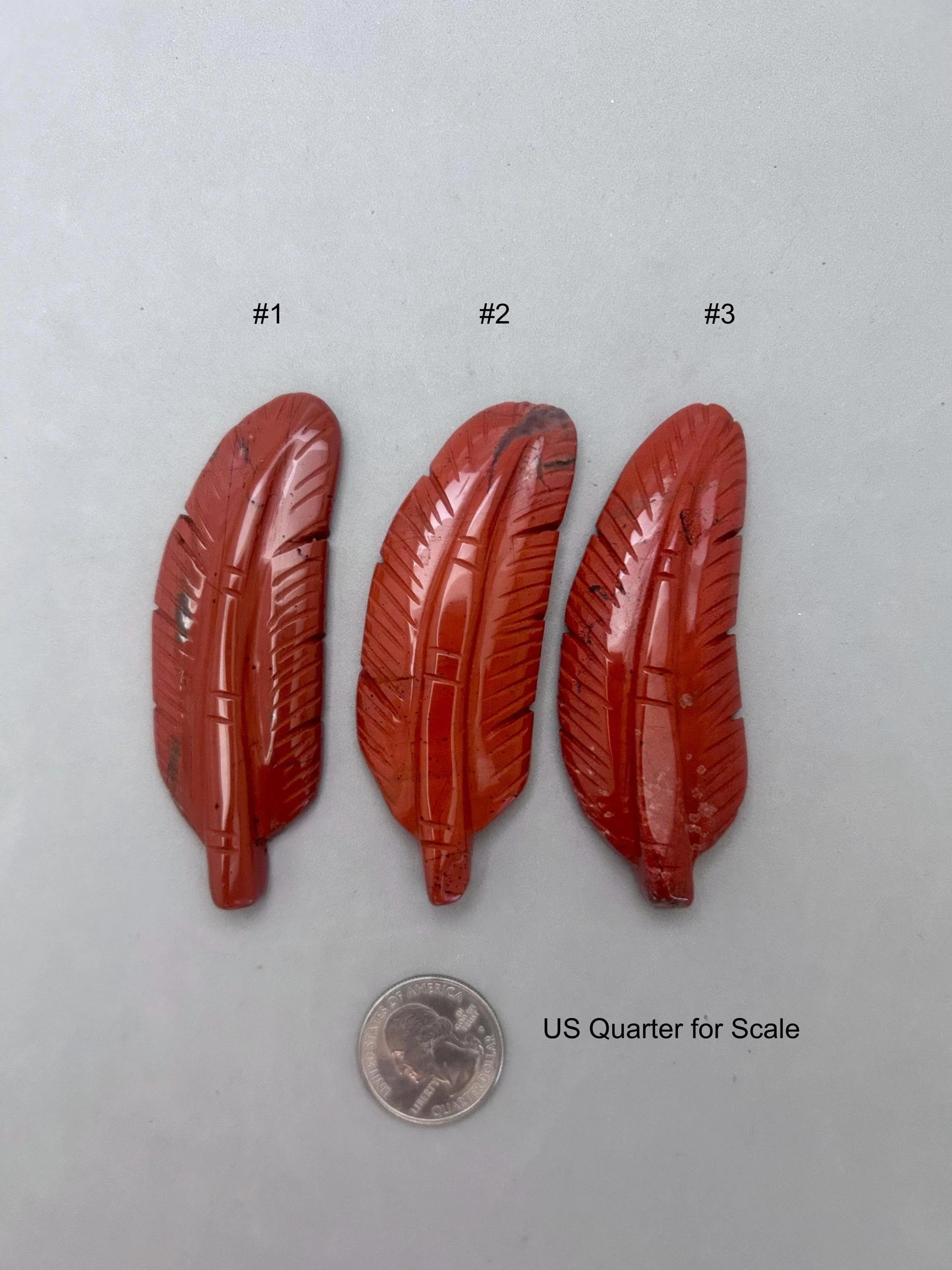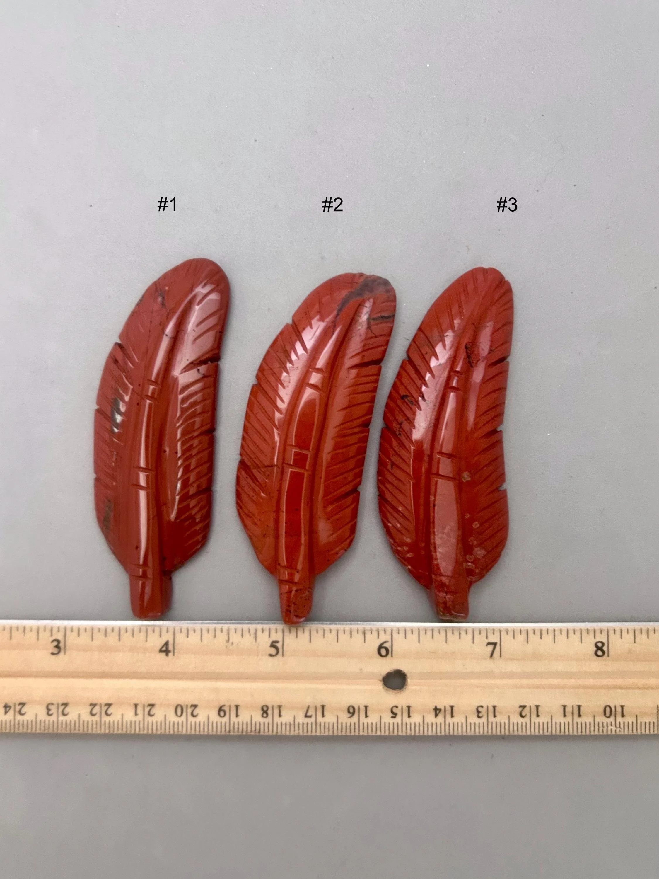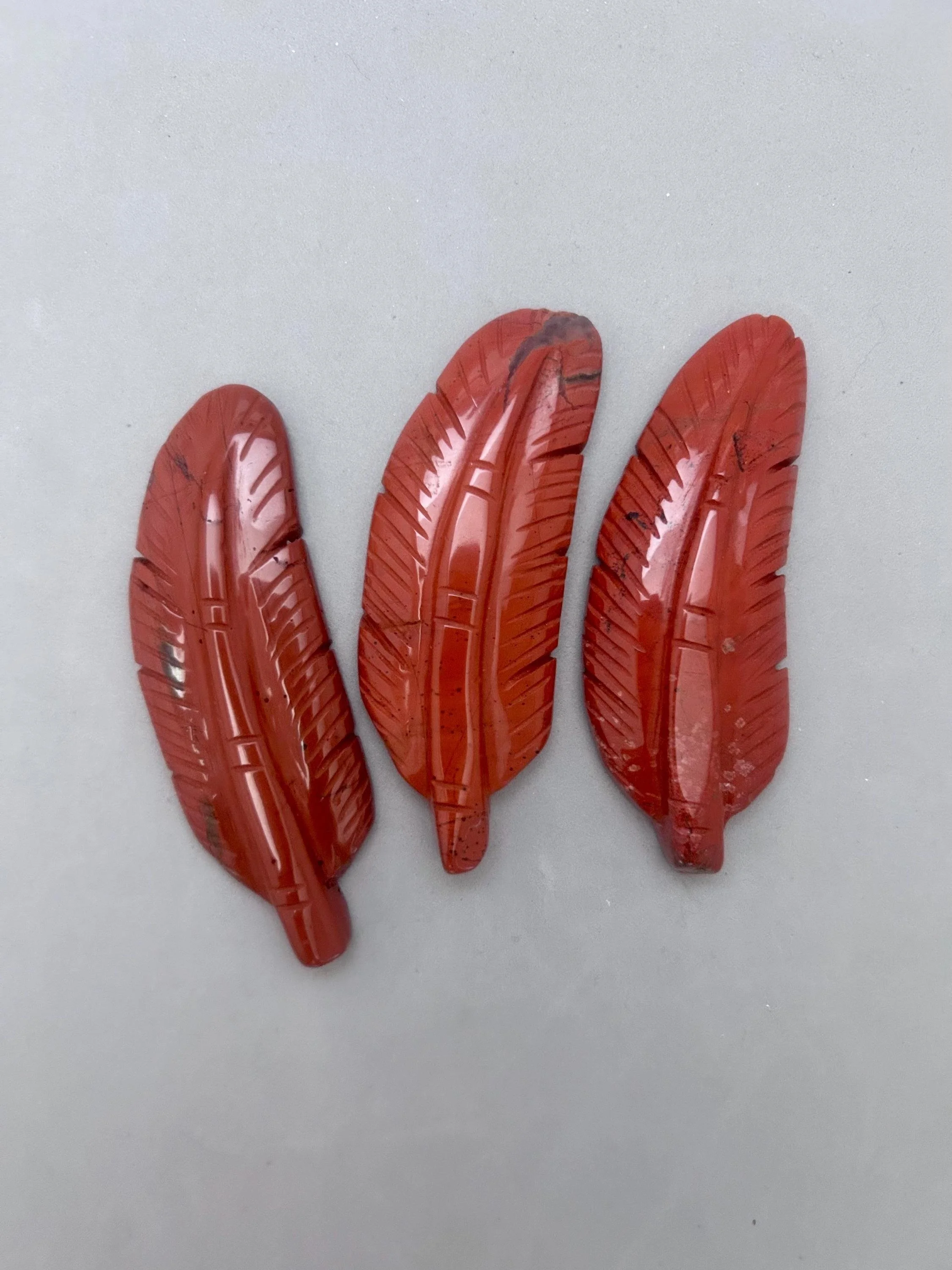 Like many people a red feather for me, is a sign from a loved one on the other side. For others, it represents a message from Source to have strength, courage and power, especially if you are facing challenges in life. This listing is for one red jasper feather carving, which you'll choose upon checkout. Here are more details for each piece: