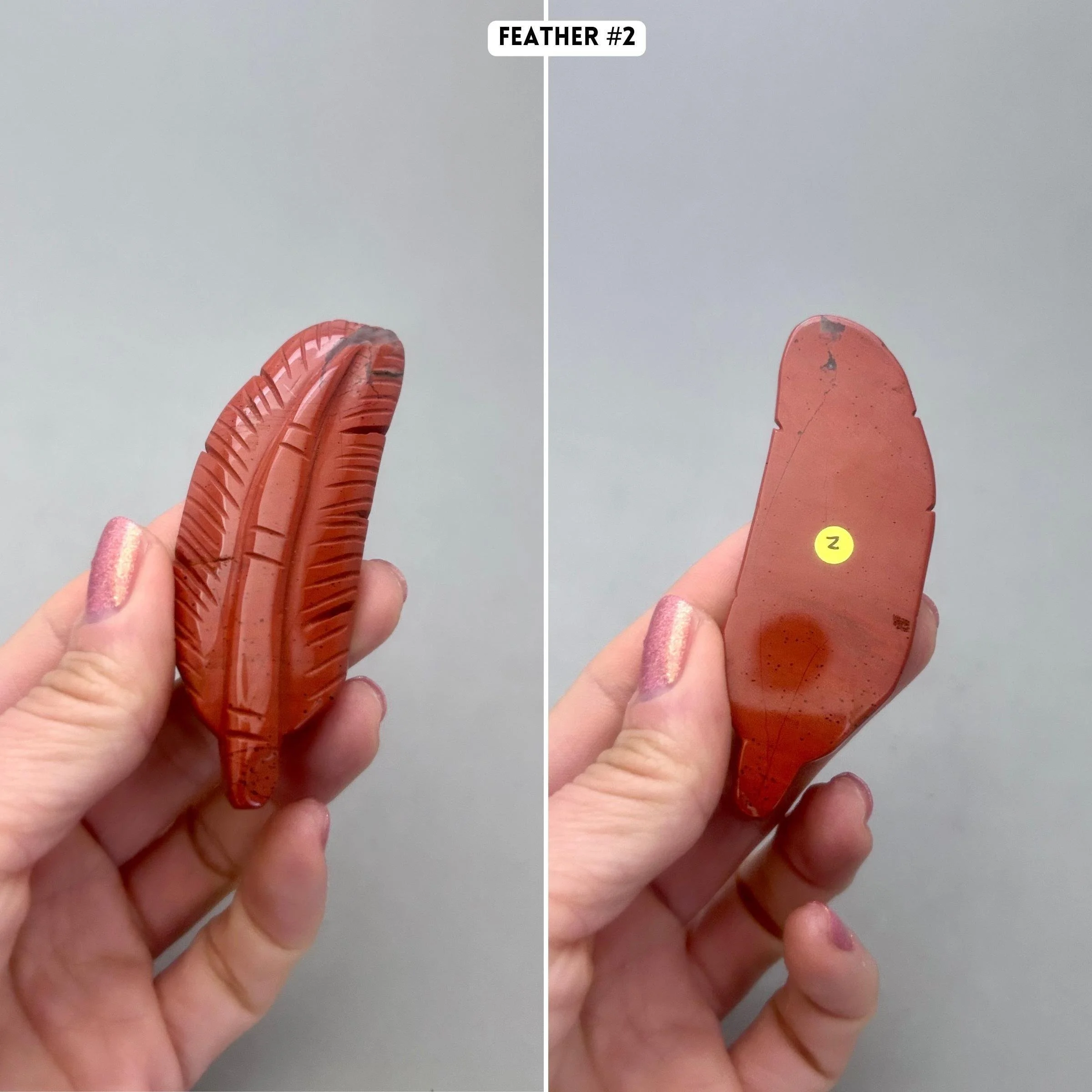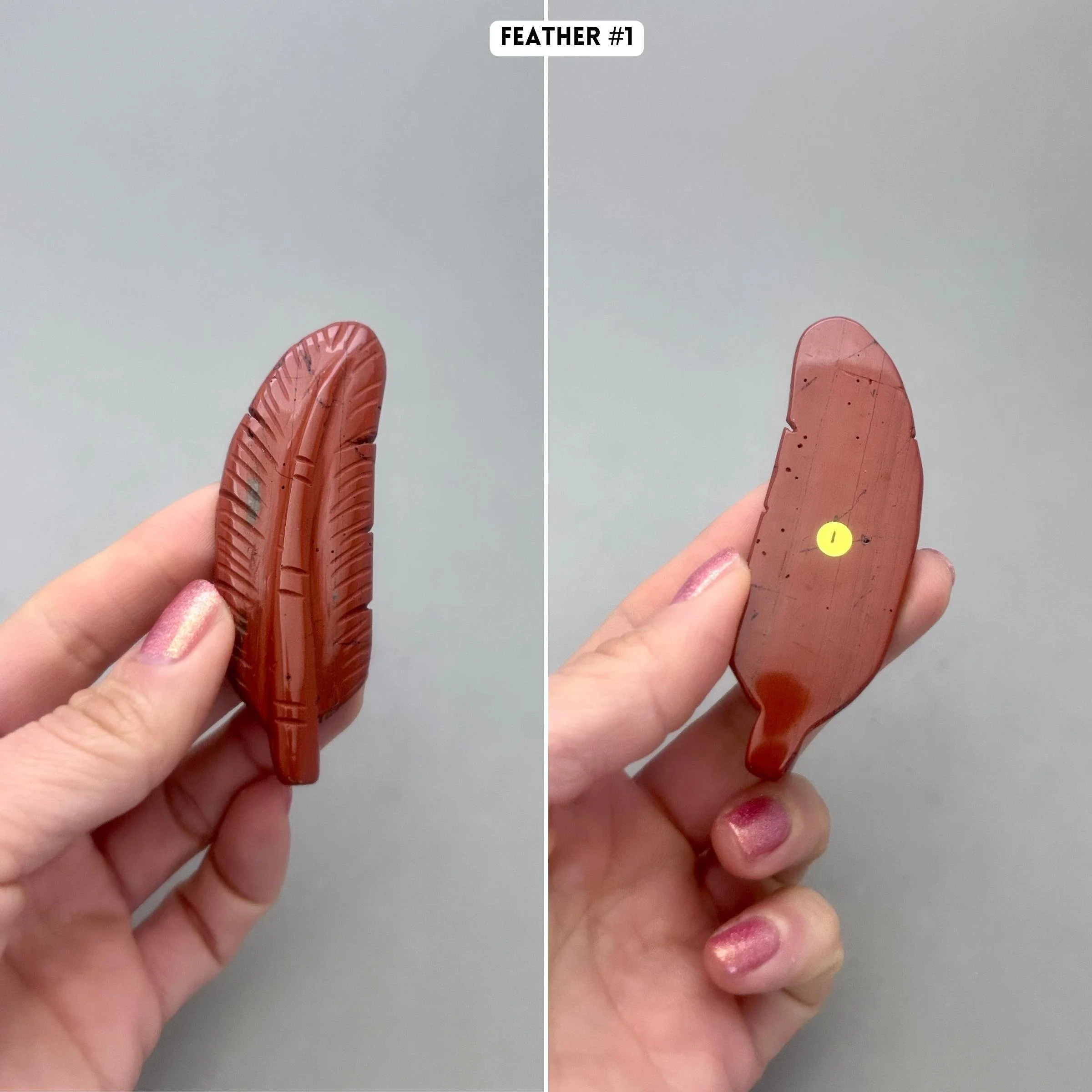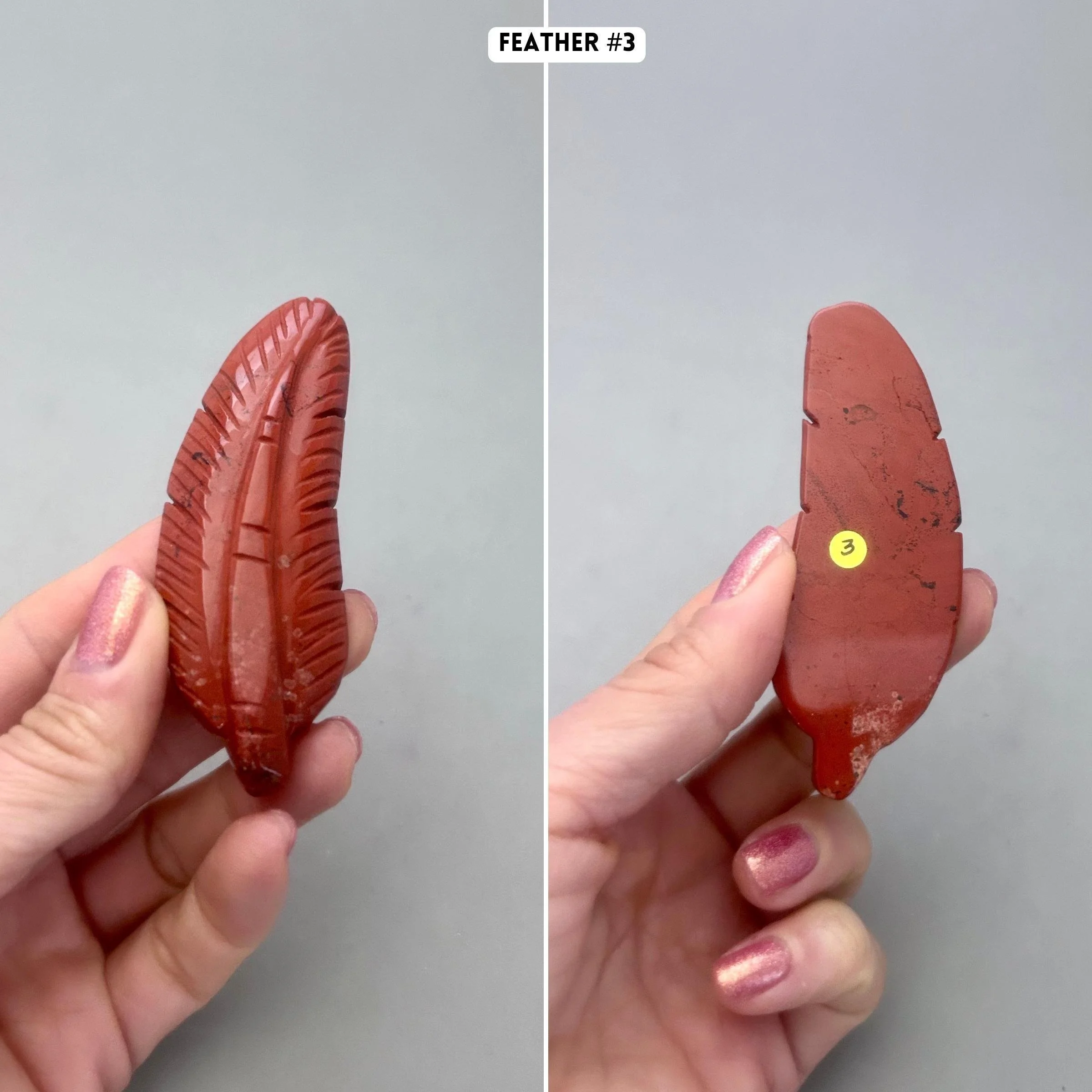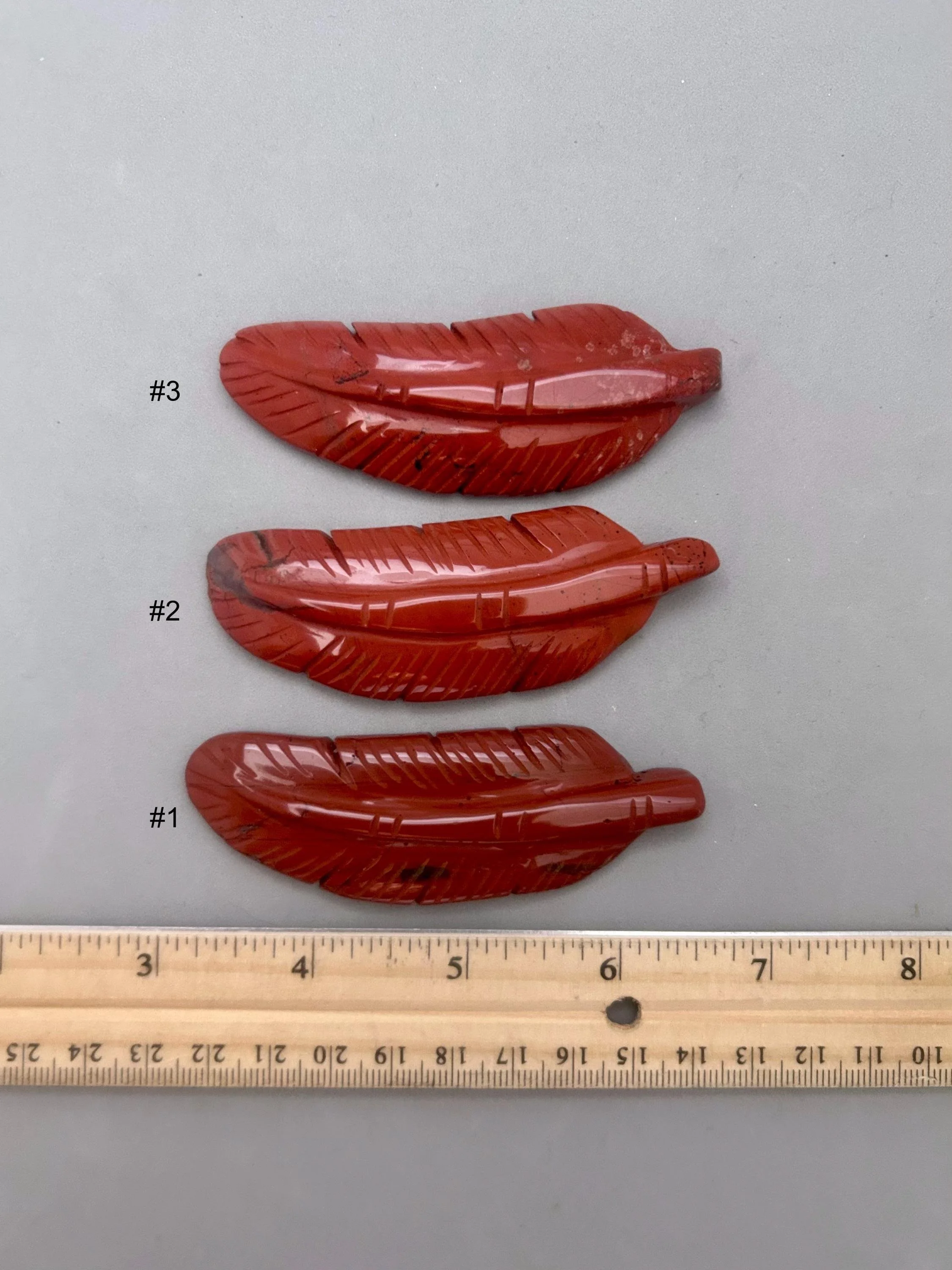 Like many people a red feather for me, is a sign from a loved one on the other side. For others, it represents a message from Source to have strength, courage and power, especially if you are facing challenges in life. This listing is for one red jasper feather carving, which you'll choose upon checkout. Here are more details for each piece: