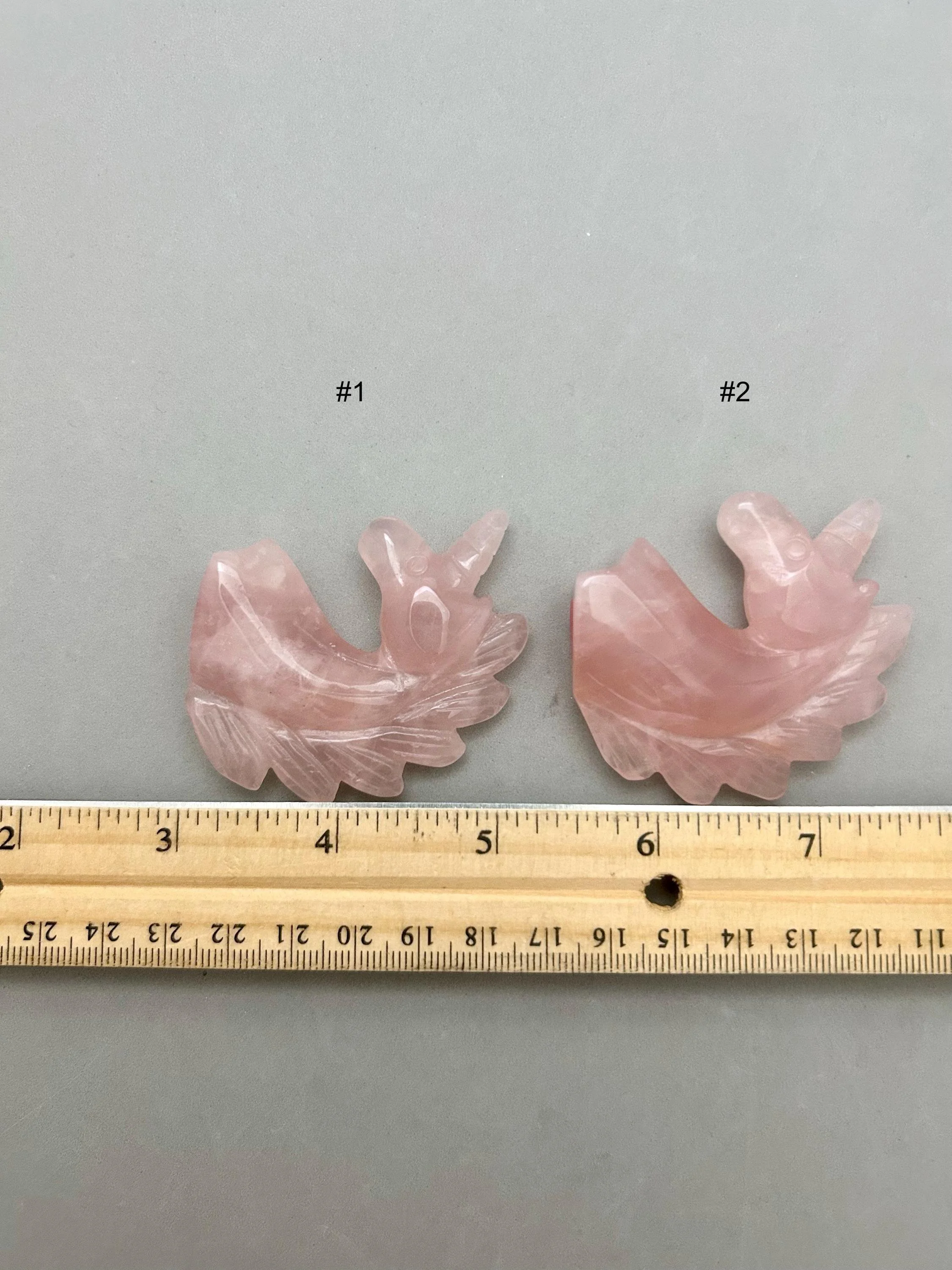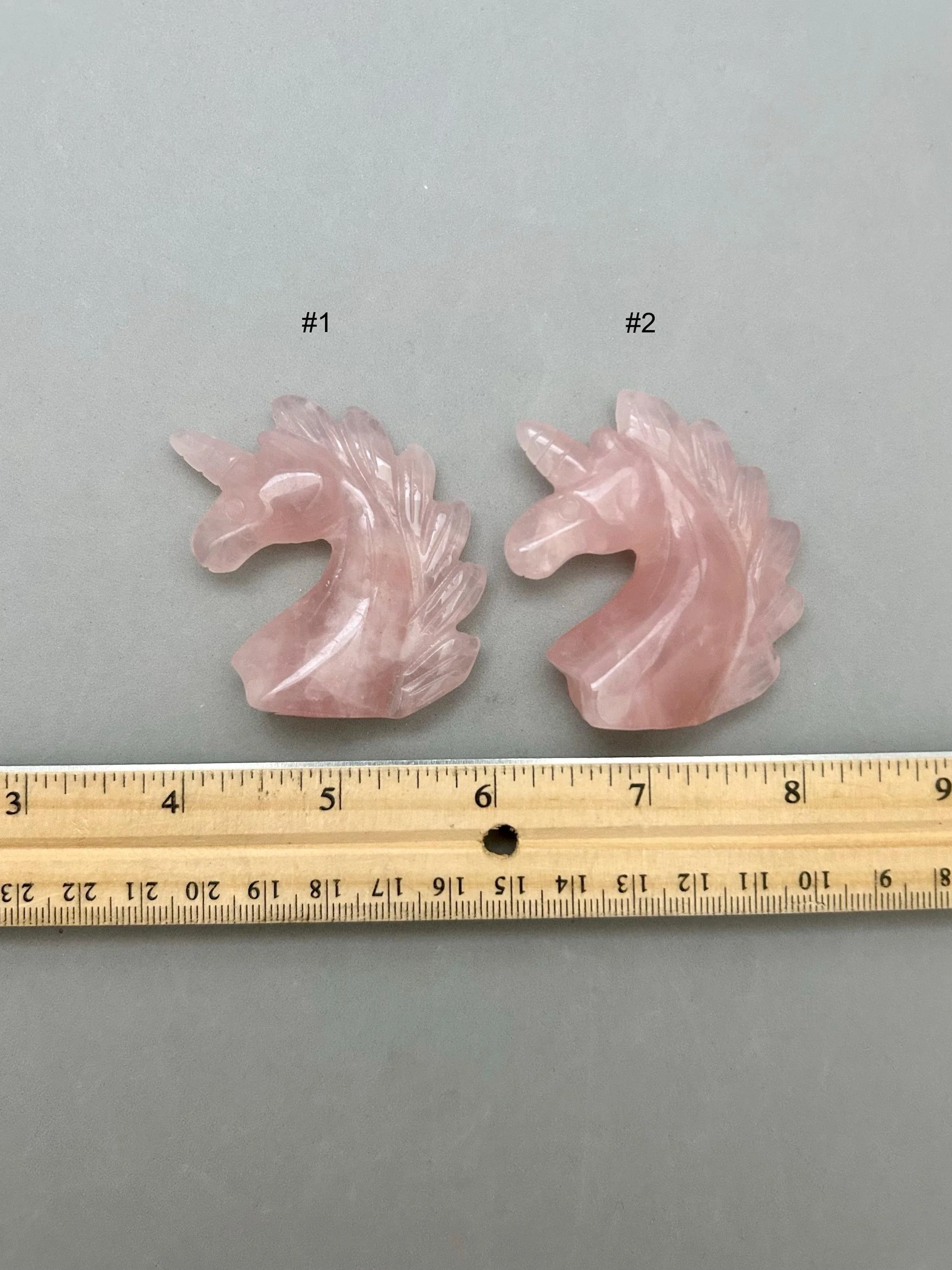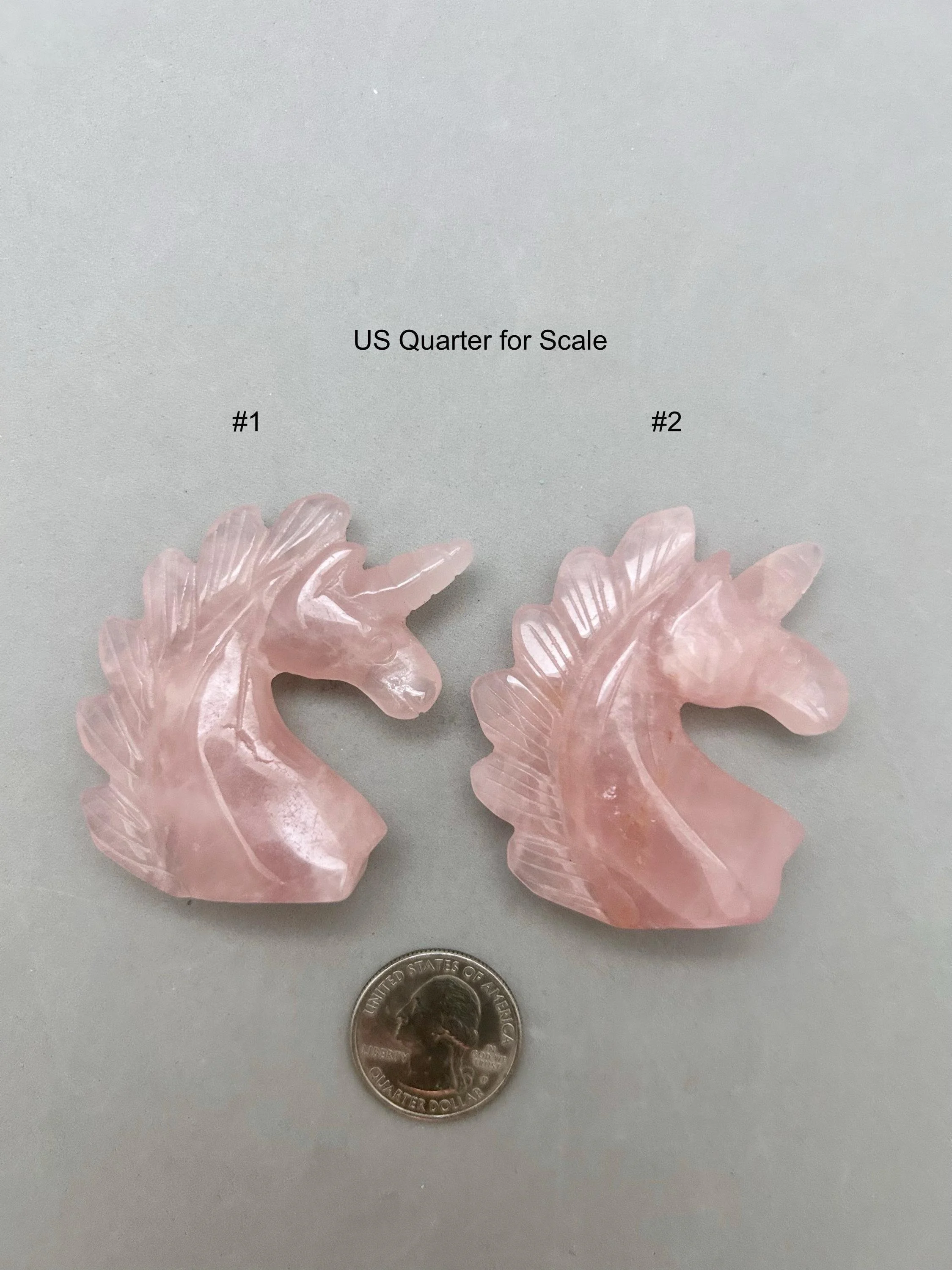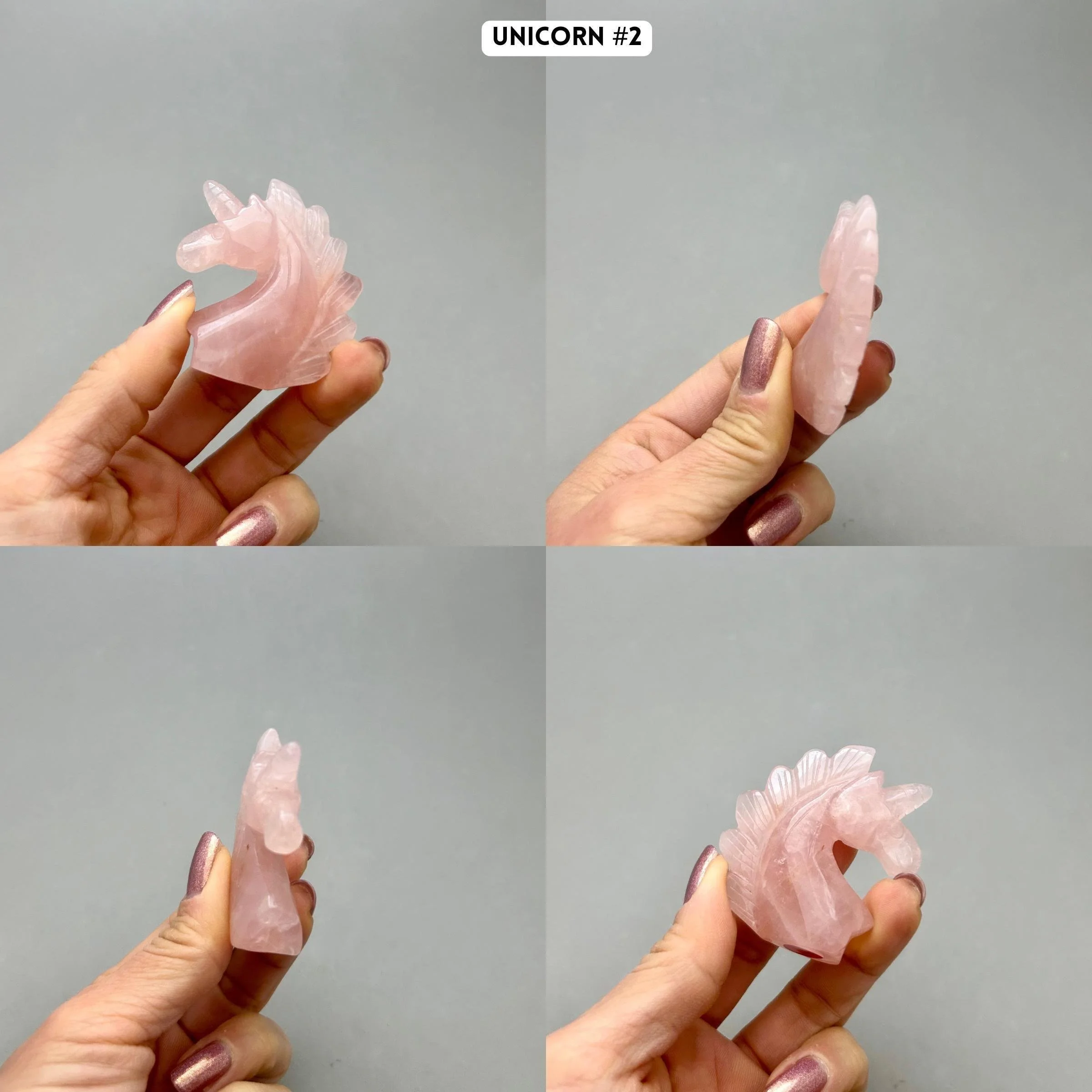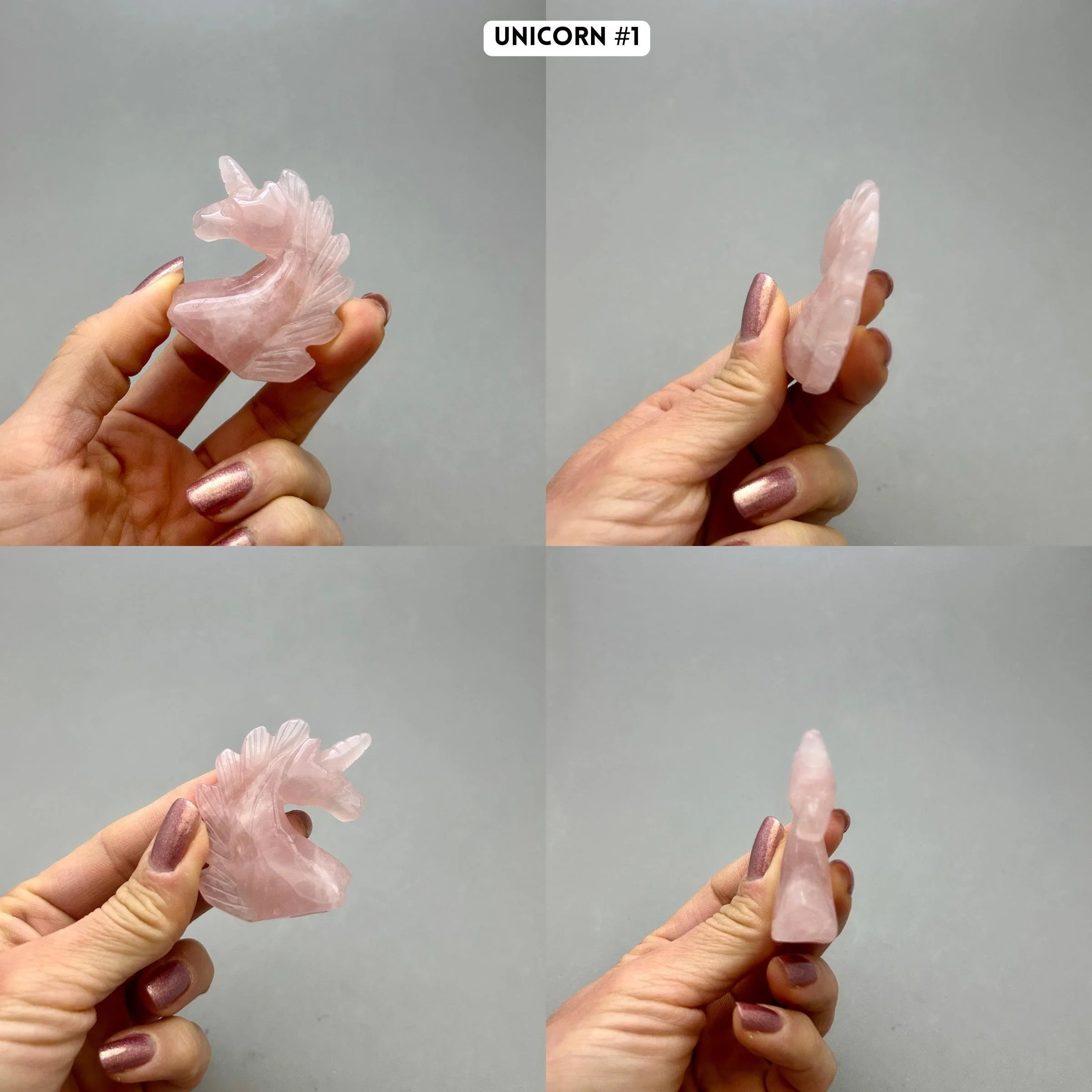 These gorgeous rose quartz unicorn figurines are self standing and make for wonderful gifts. You'll choose your unicorn upon checkout. Here are more details for each piece: