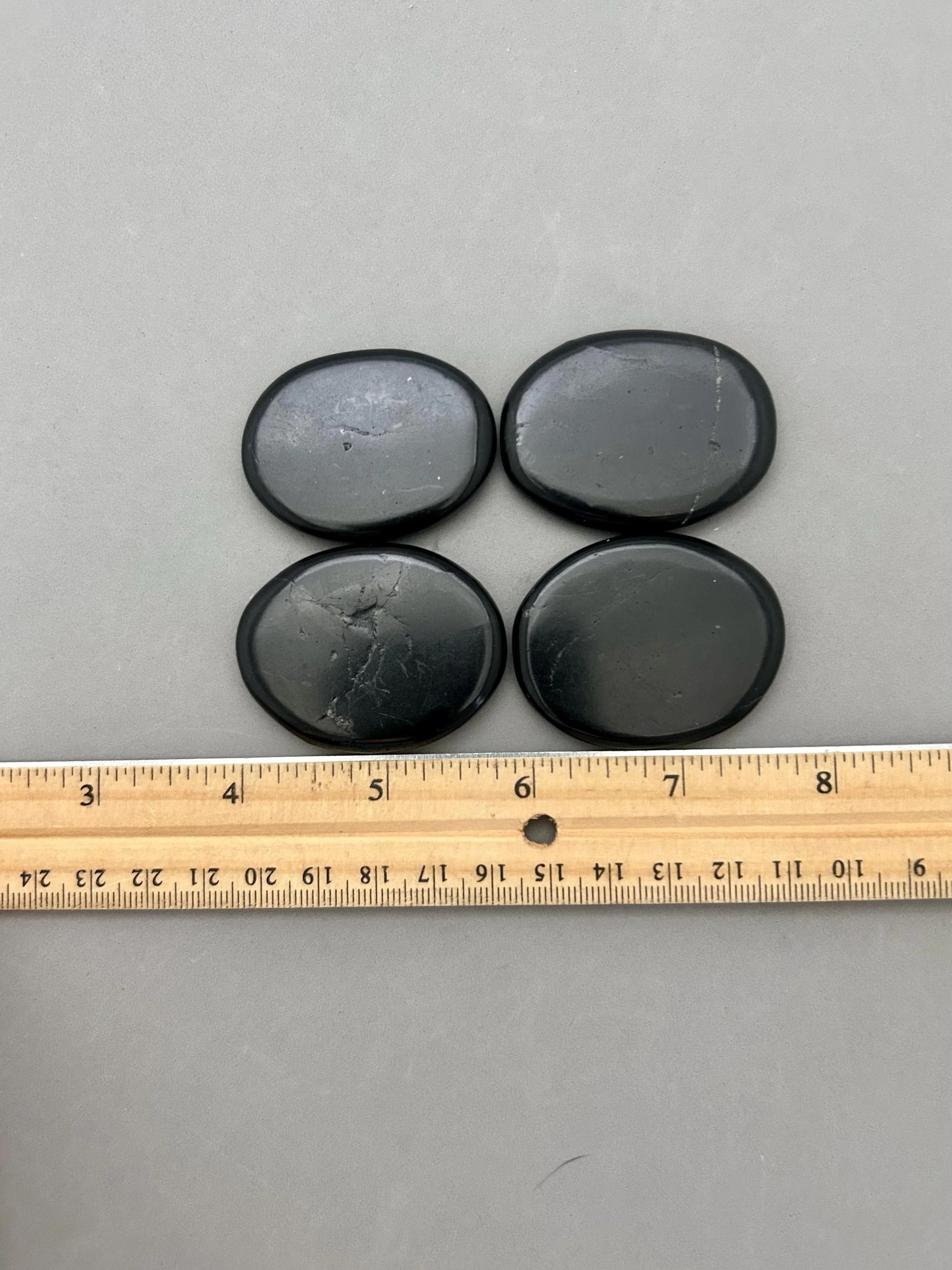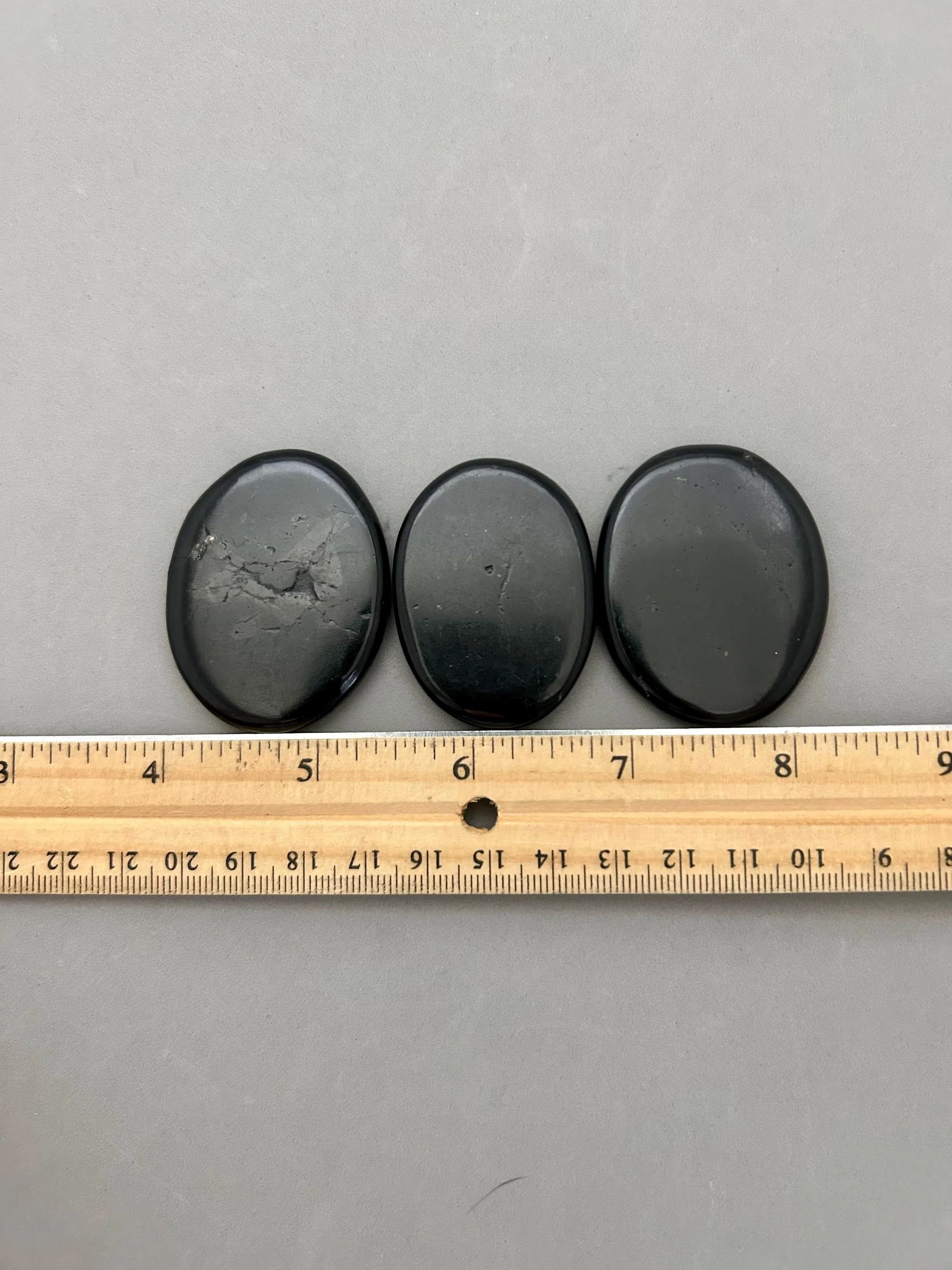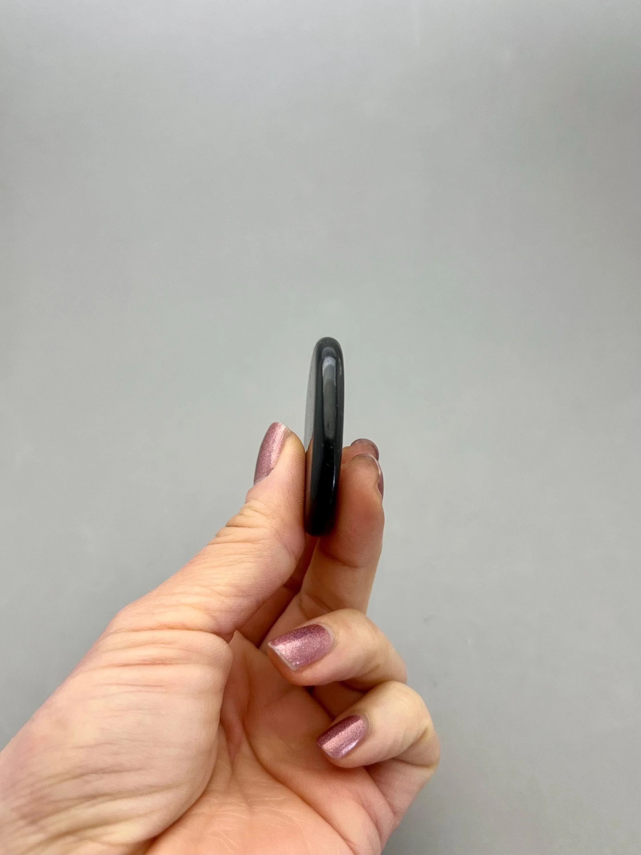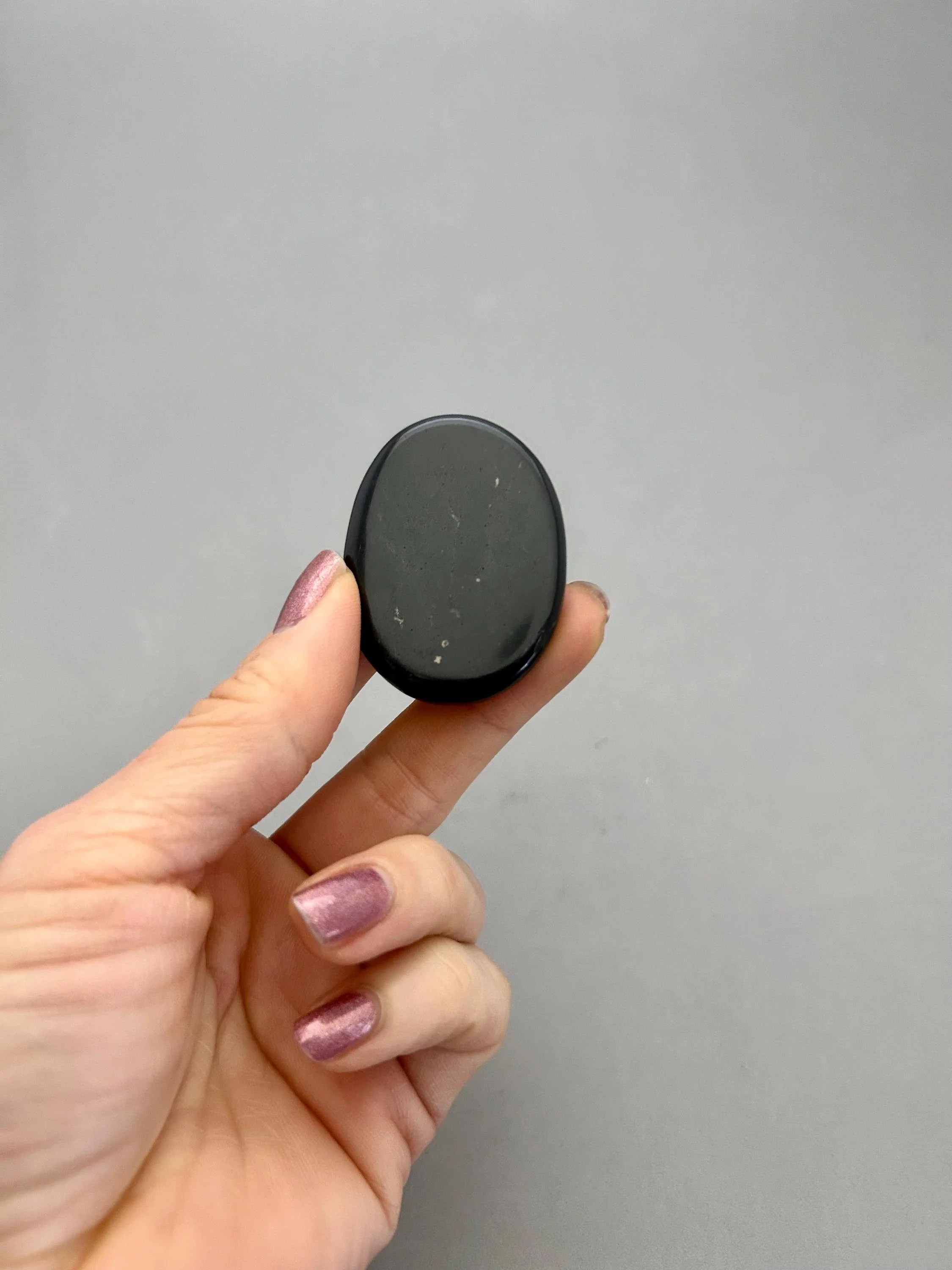 Shungite is a carbon based material, believed to be 2 million years old, that is found only in the Karelia region of Russia. It was used by Tsars of Russia for overall healing and is offered in many health care products today for detoxing and purification. This listing is for one small palm stone which measures approximately 1 7/8" x 1 7/16" x 5/16". Your palm stone will be chosen intuitively from the current inventory. Since this material is mostly carbon, it is fairly fragile and will temporary color your hands black when you handle it - remove "staining" by washing hands with warm soap and water.