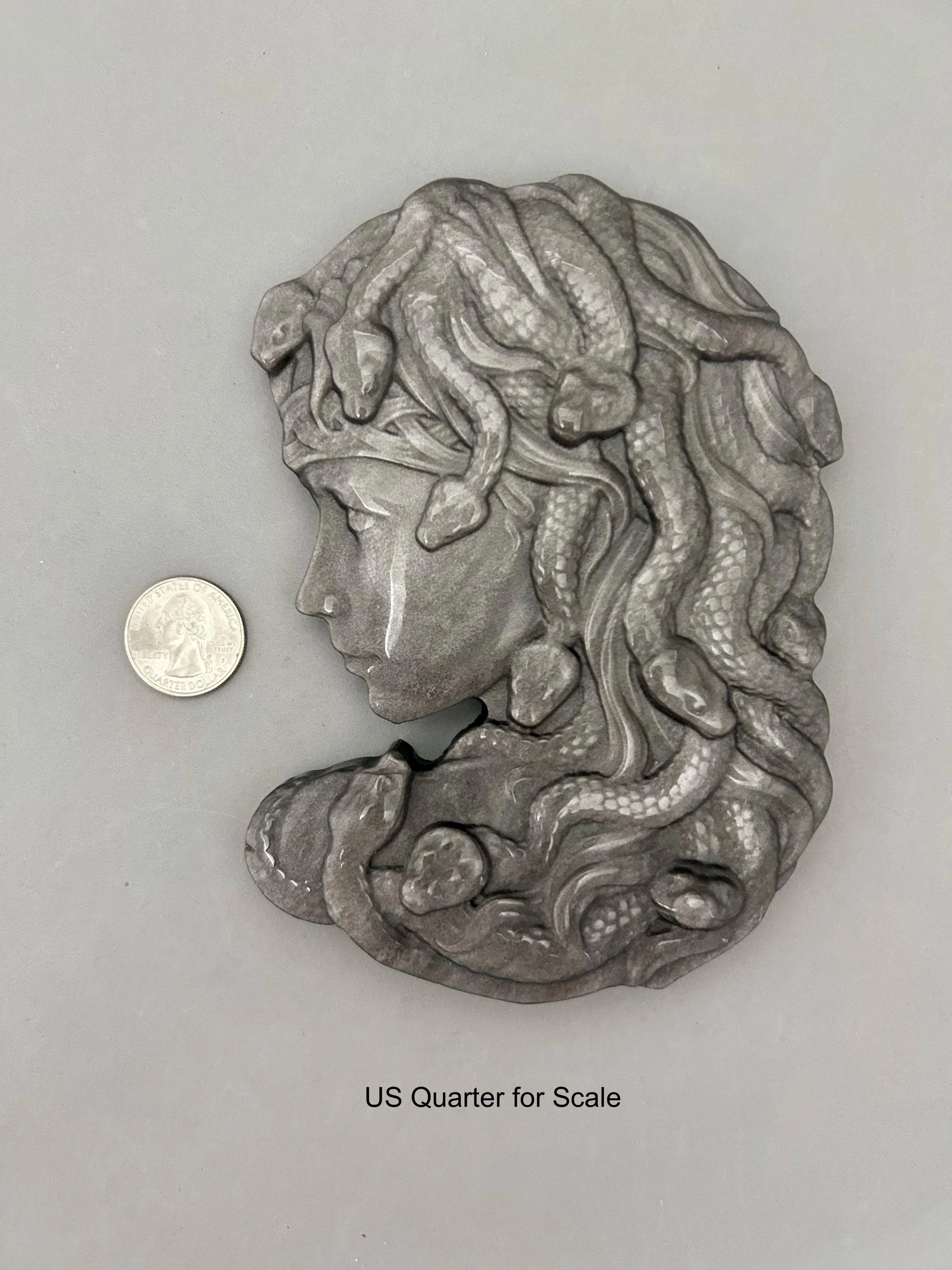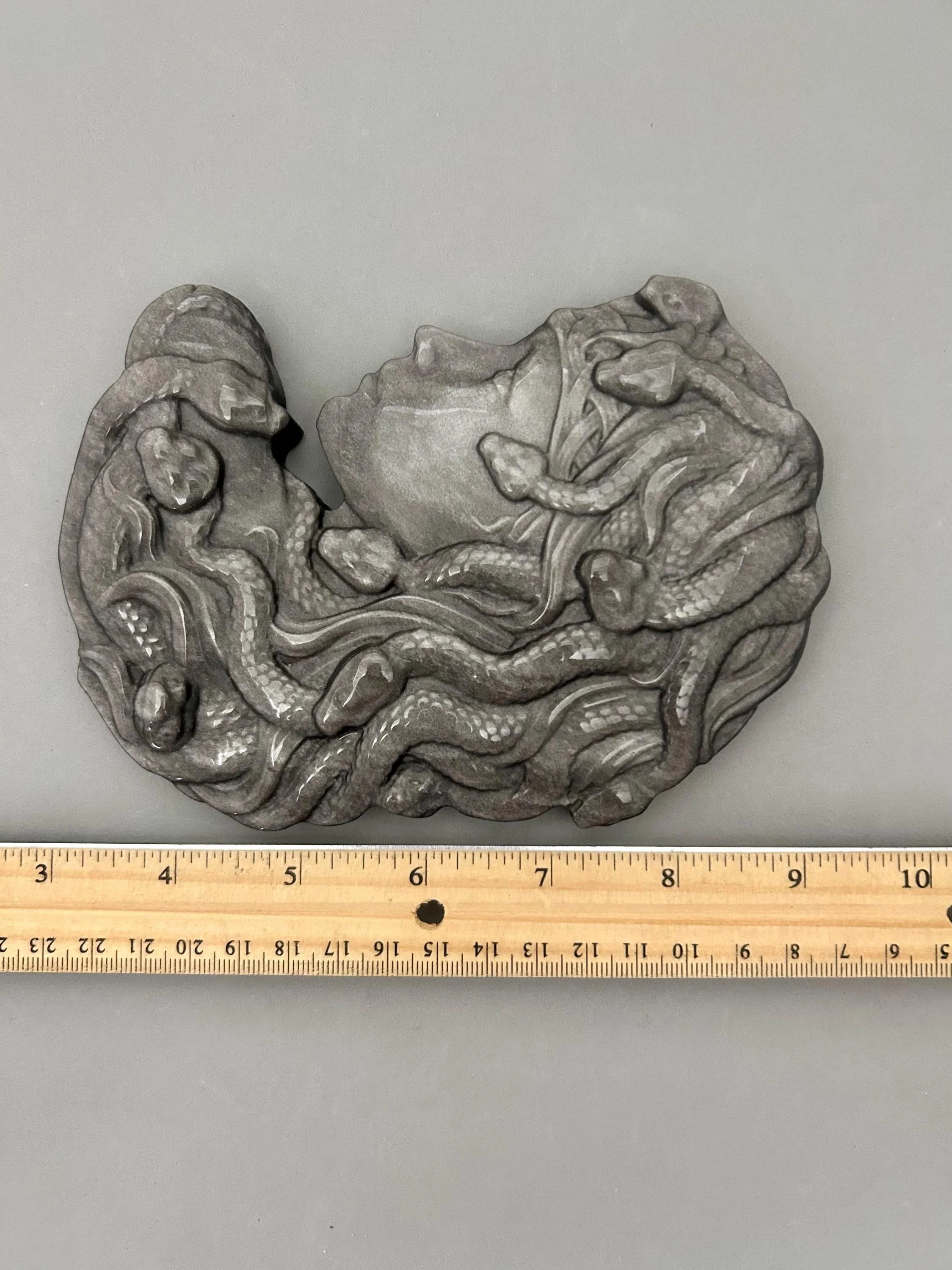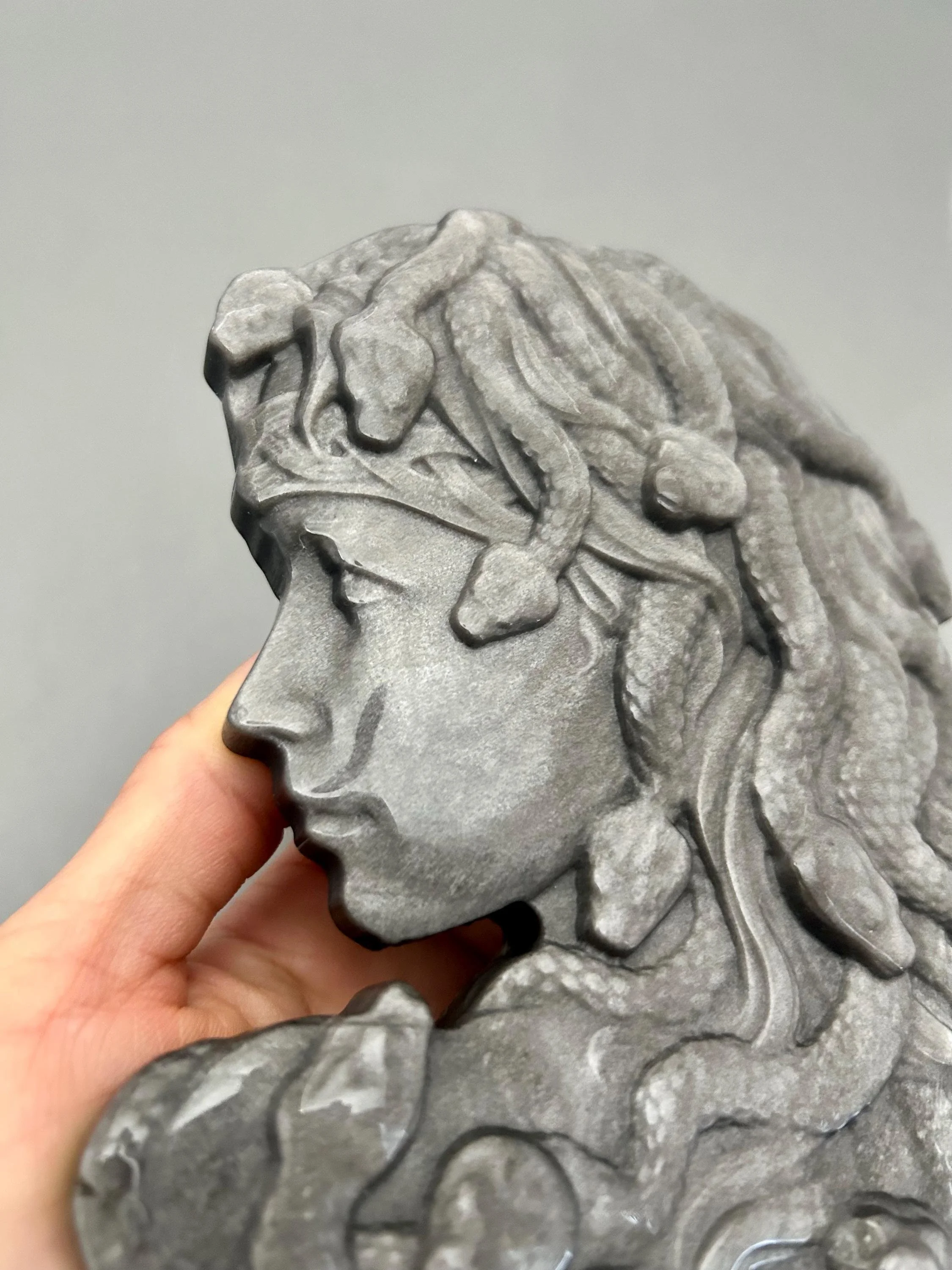 Silver Sheen Obsidian Medusa Carving Protection Divine Feminine Energy Powerful Goddess Energy Altar Ritual Goddess Strength Vengeance