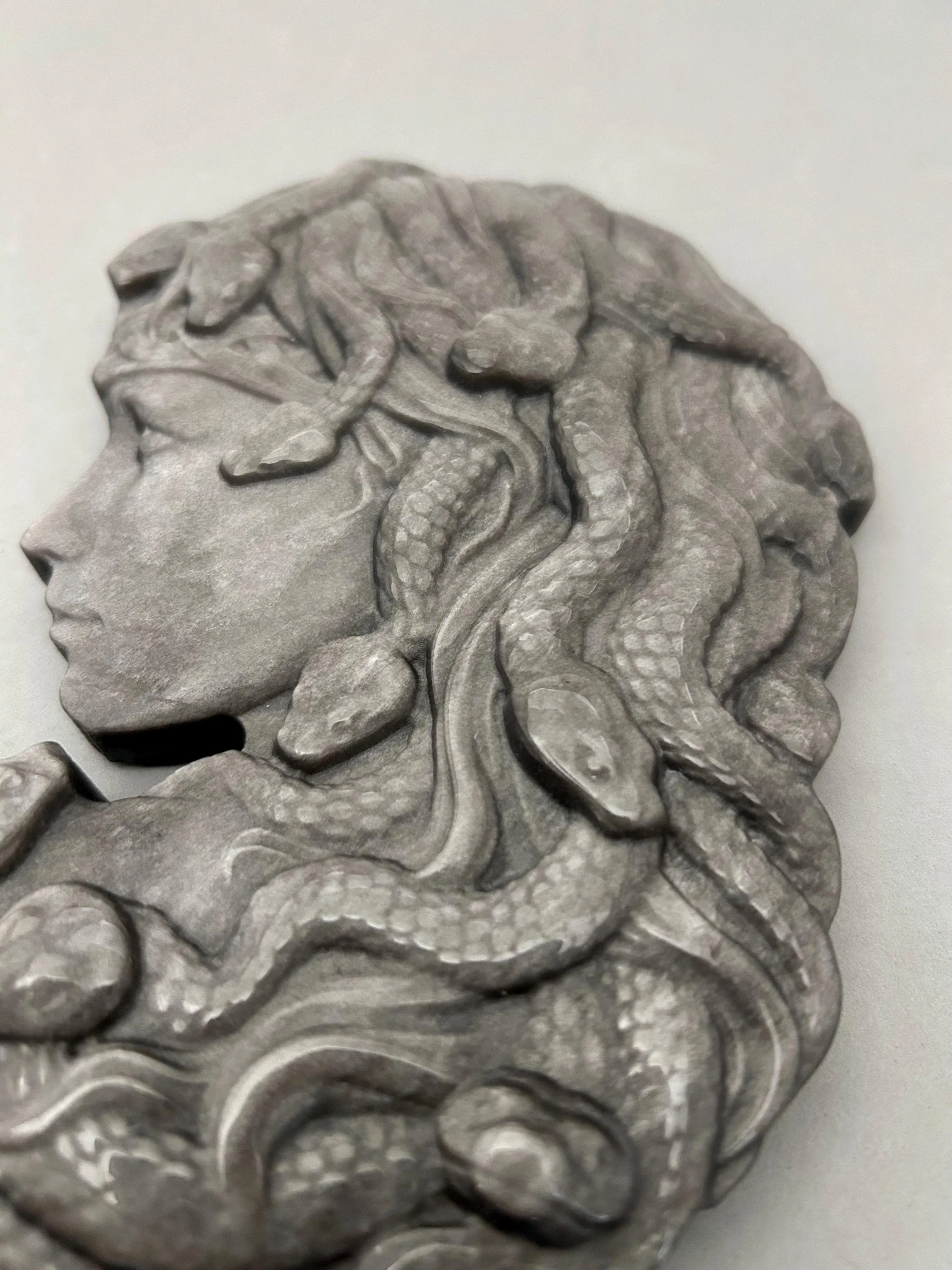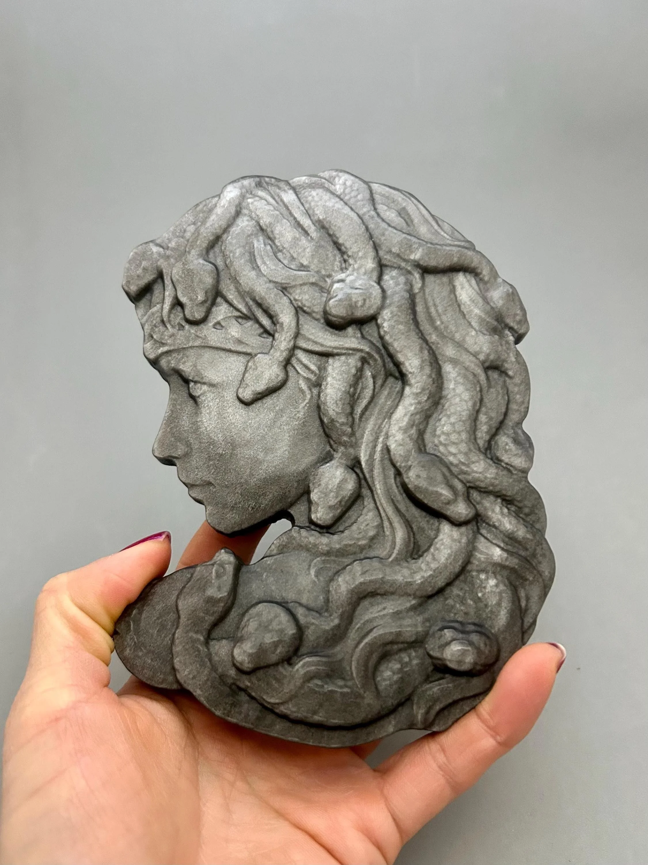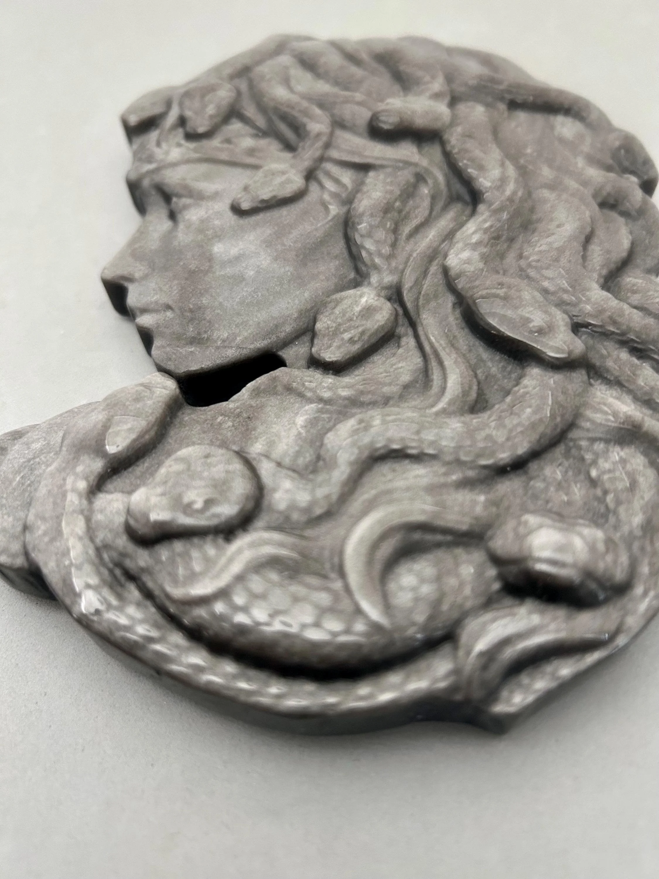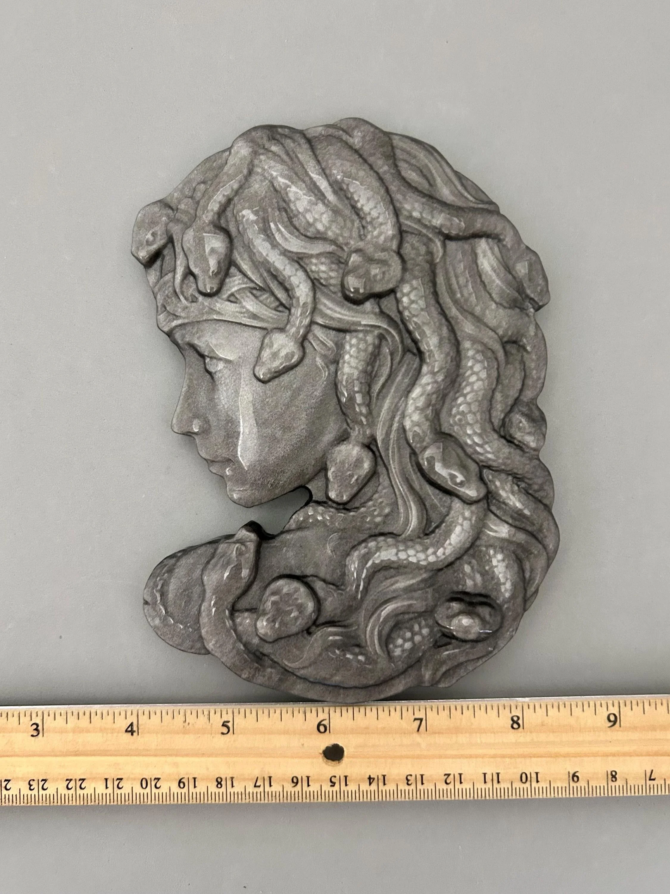 Silver Sheen Obsidian Medusa Carving Protection Divine Feminine Energy Powerful Goddess Energy Altar Ritual Goddess Strength Vengeance
