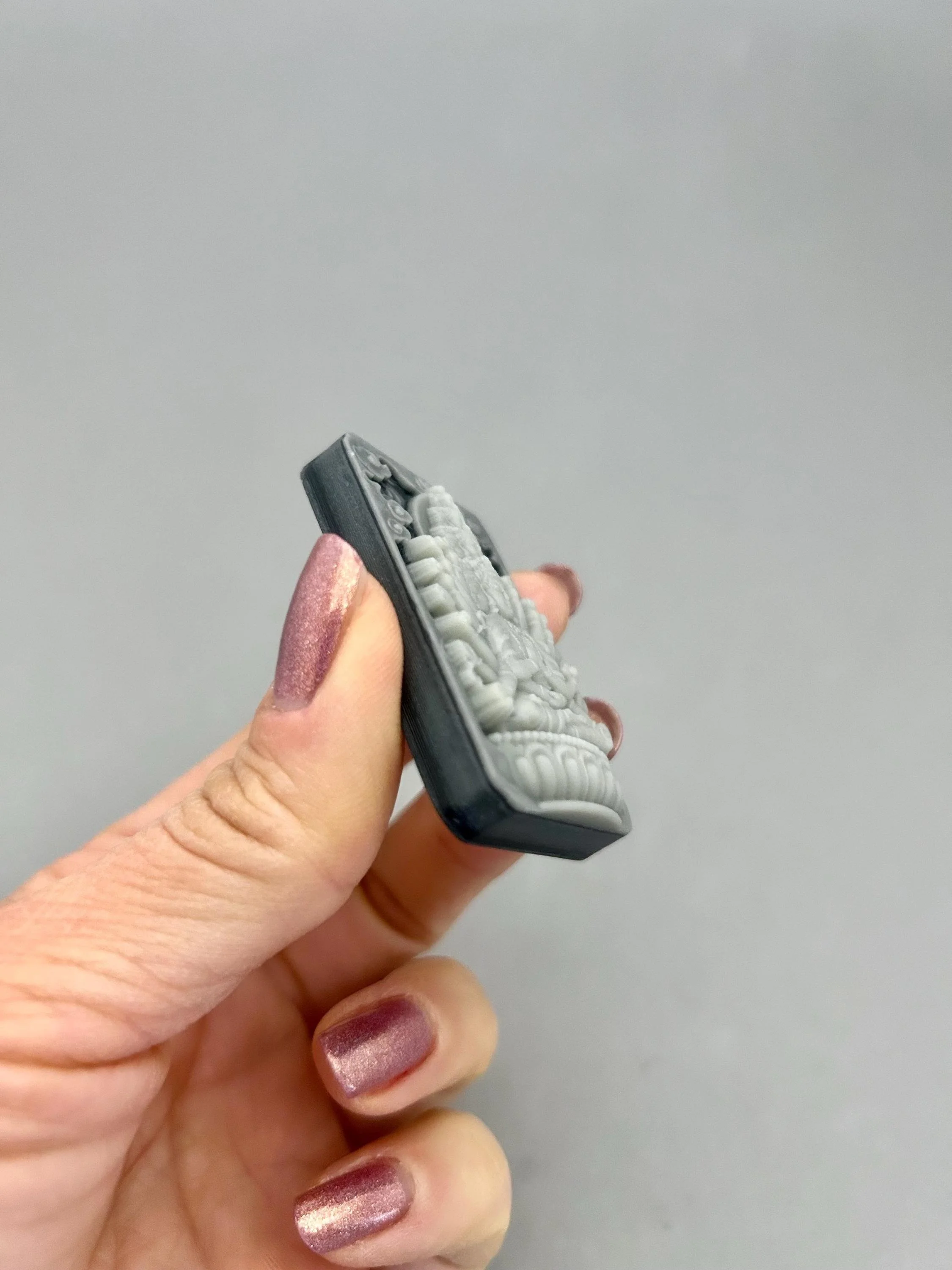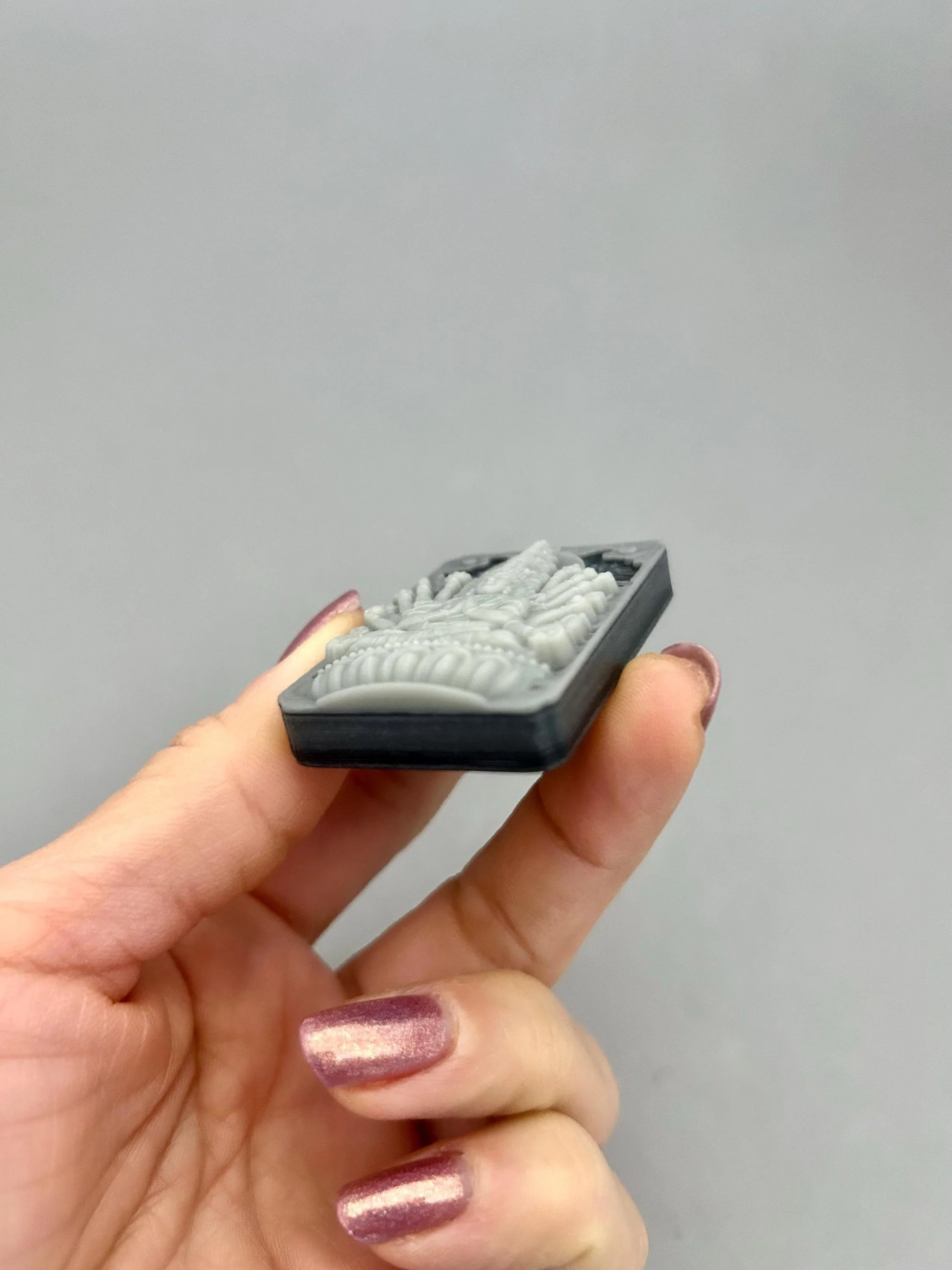 This listing is for one carving made from Taiji stone, which is also known as Tai Chi Stone, Tai Chi Quartz or Yin Yang jade. It is considered to be a variety of white quartz and black jasper, often just called jasper. The carving is done in a relief style, leaving the black jasper as the background. It measures 1 15/16” x 1 5/16” x 7/16” and weighs about 1.42 ounces. You will receive the exact piece as shown in this listing.